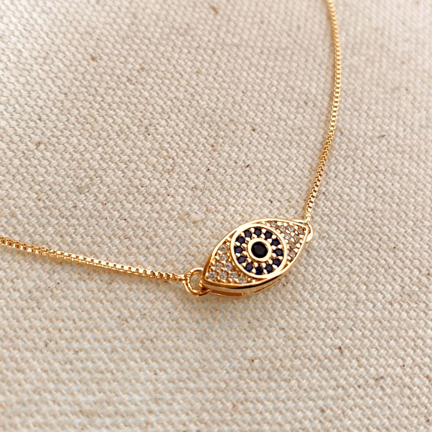 GoldFi 18k Gold Filled Micro Pave Cubic Zirconia Evil Eye Bracelet Featuring Sapphire And Clear CZ