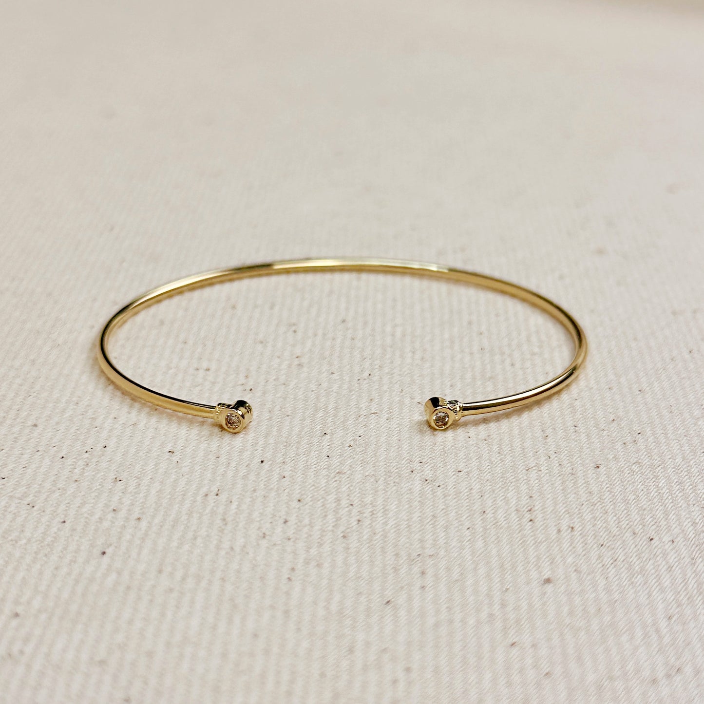 Elevate your style with our 18k Gold Filled Open CZ Cuff Bracelet! With a minimalist design and sparkly CZ stones, this bracelet adds a touch of fun to any outfit. Show off your unique and chic personality with this must-have accessory.