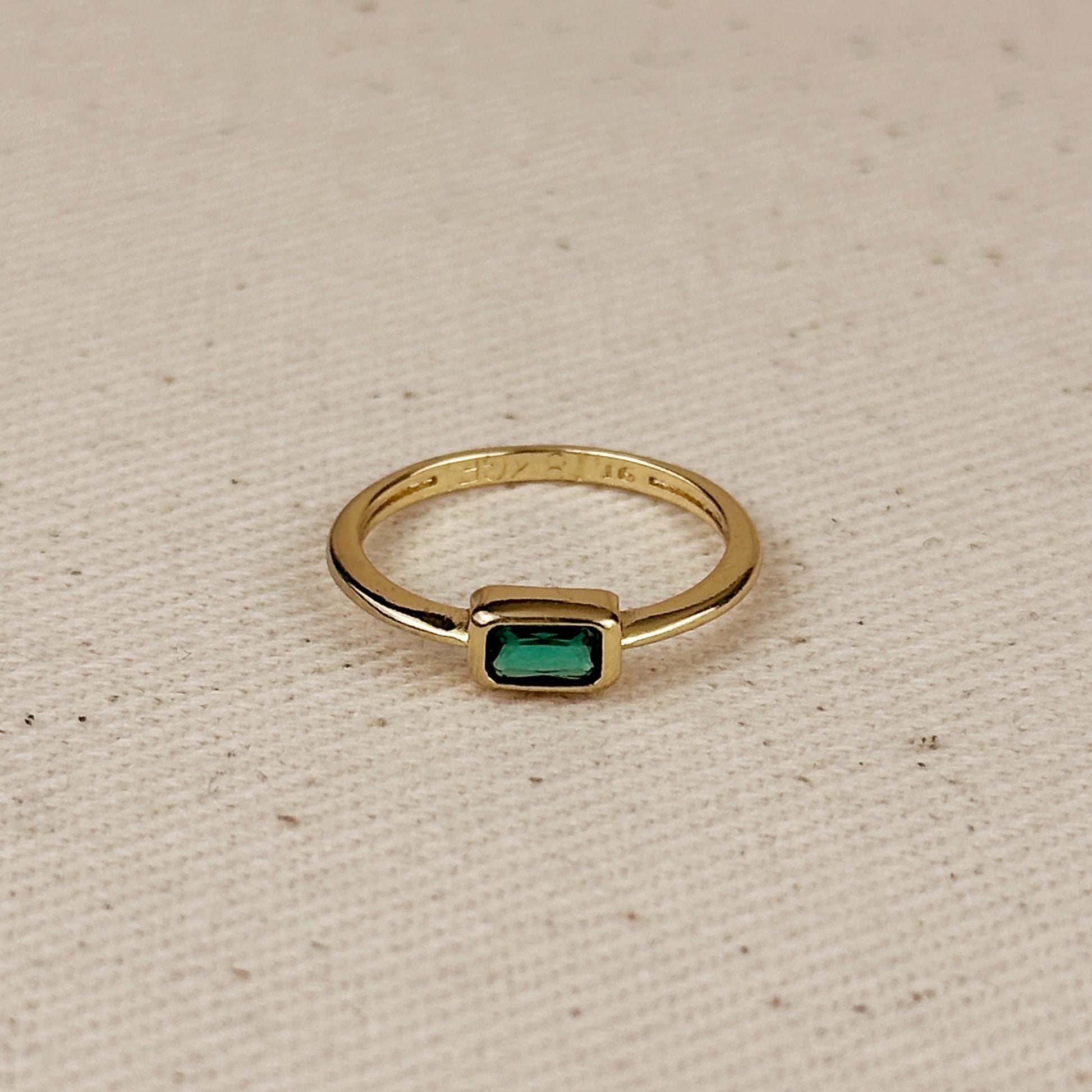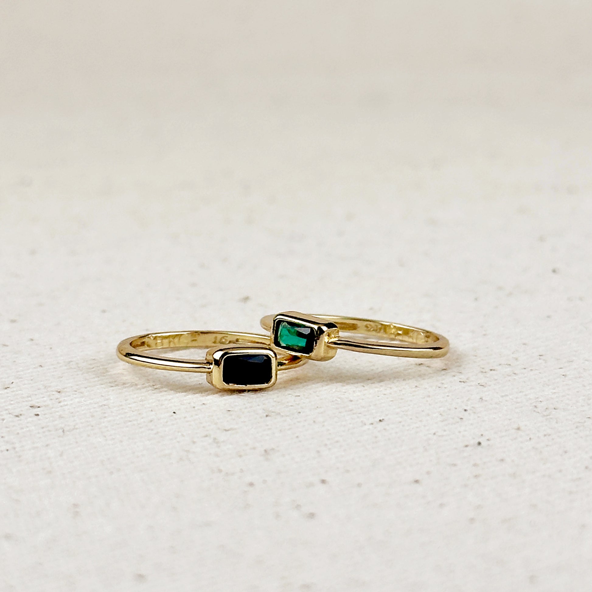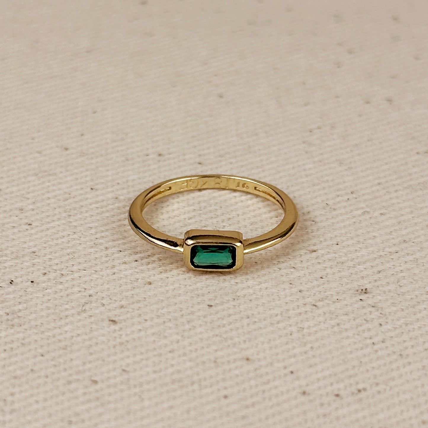 18k Gold Filled Colored CZ Rectangle Solitaire Ring