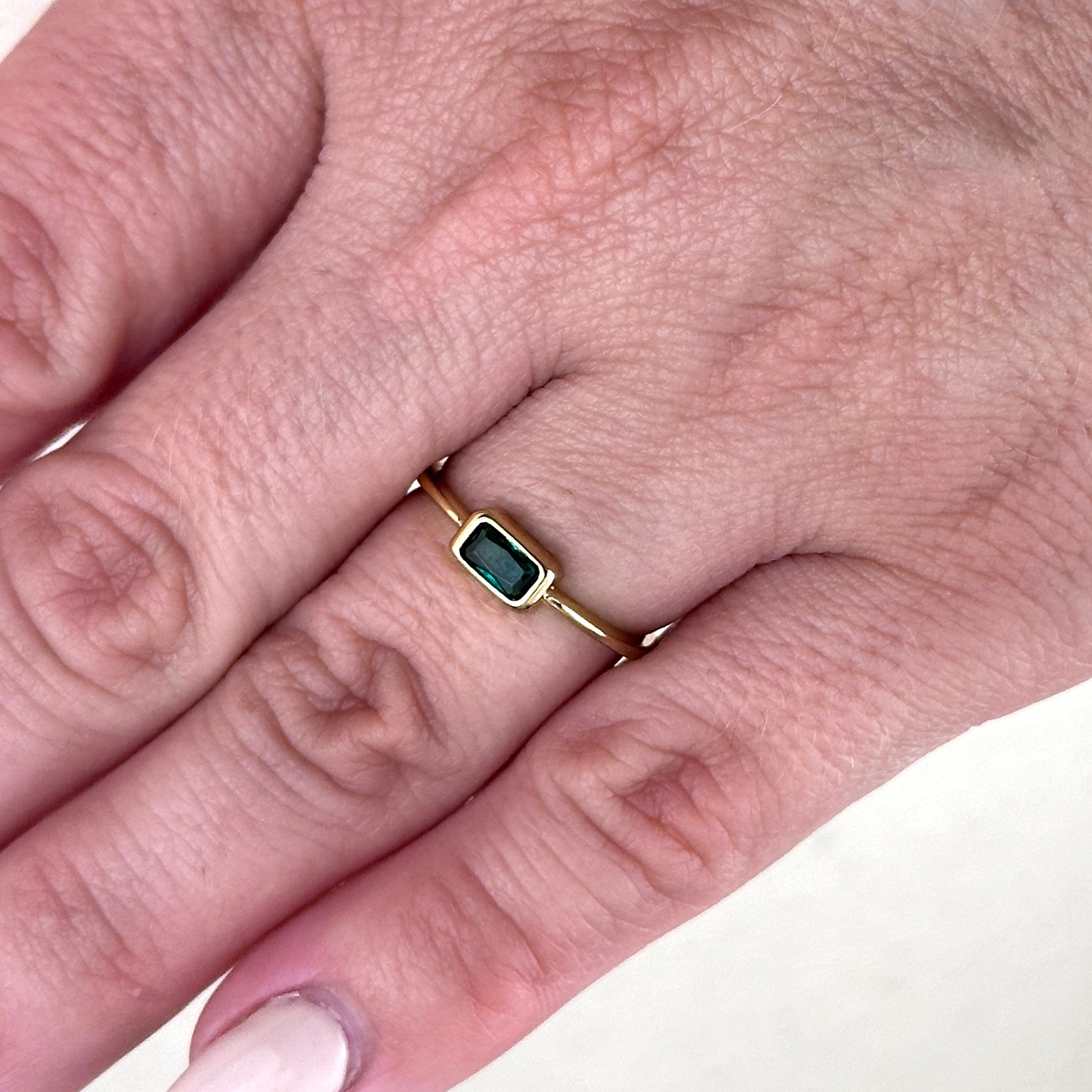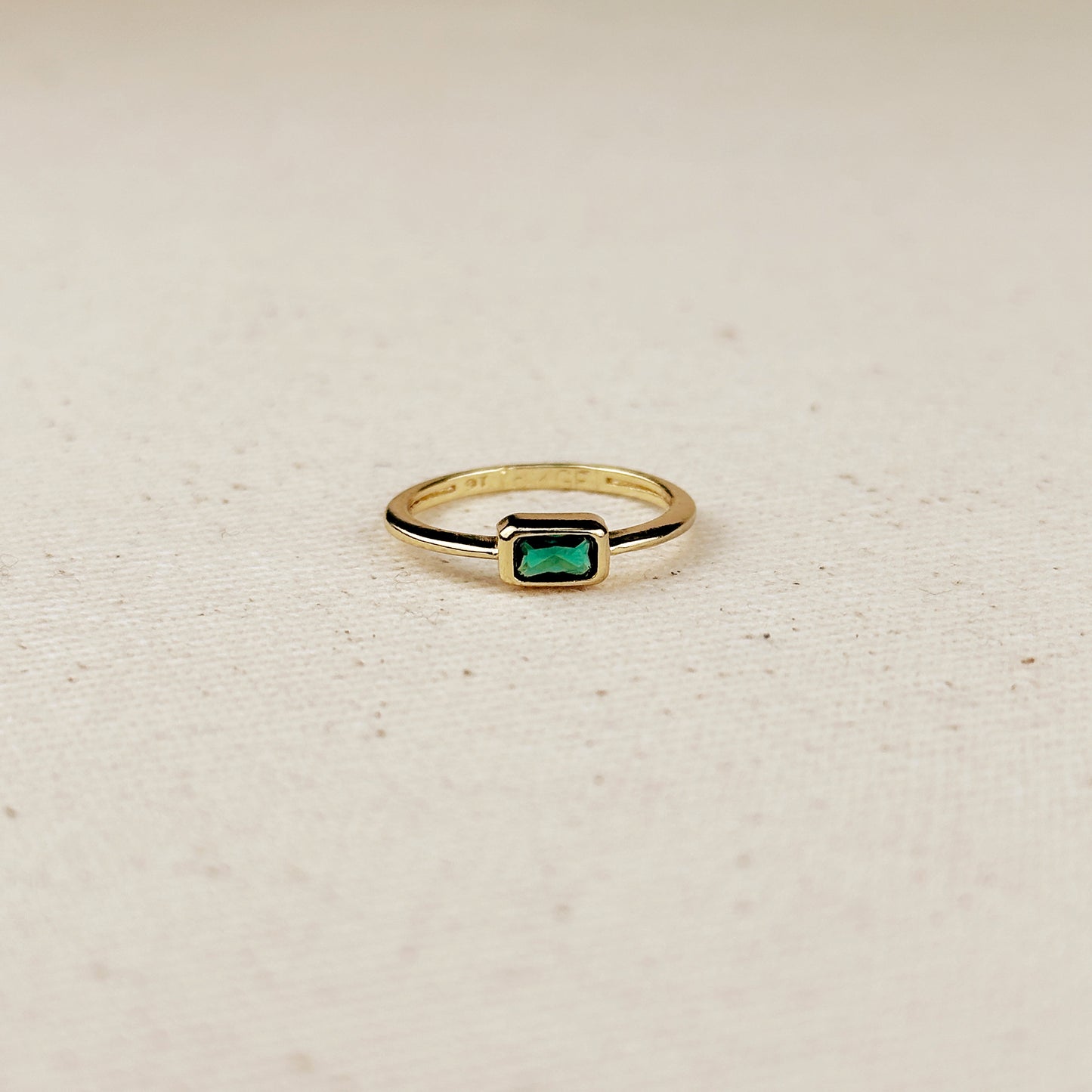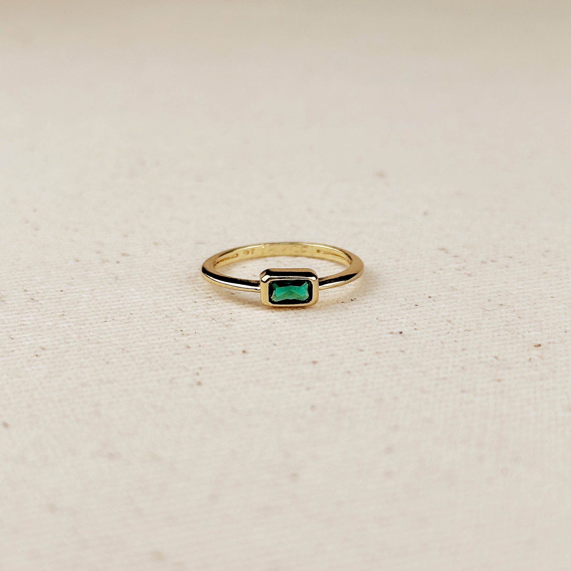 18k Gold Filled Colored CZ Rectangle Solitaire Ring