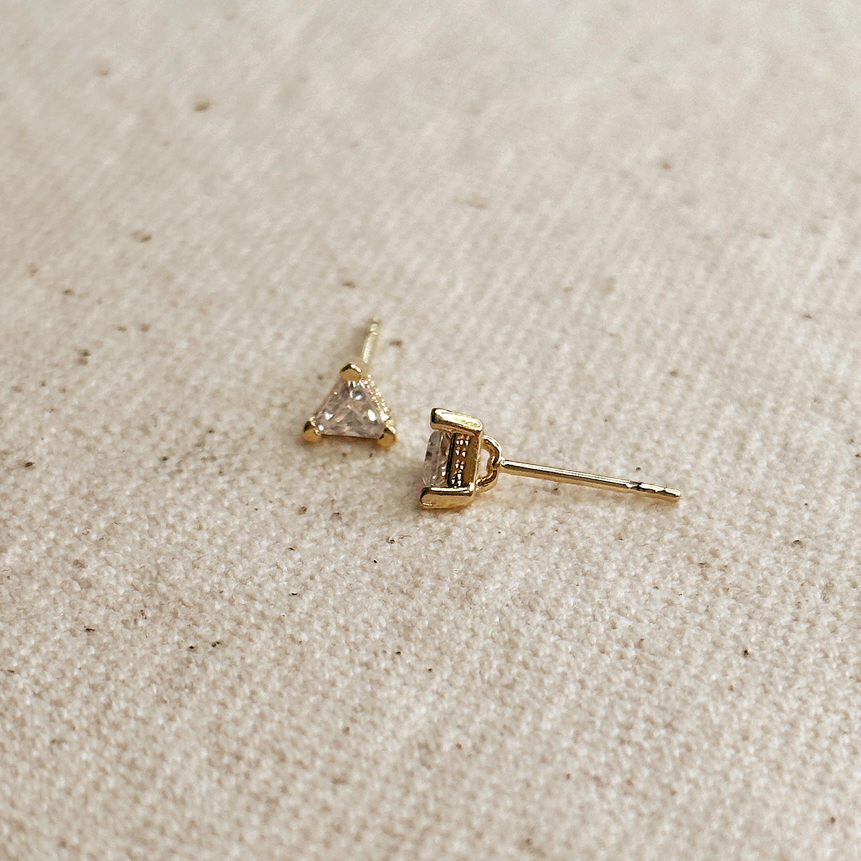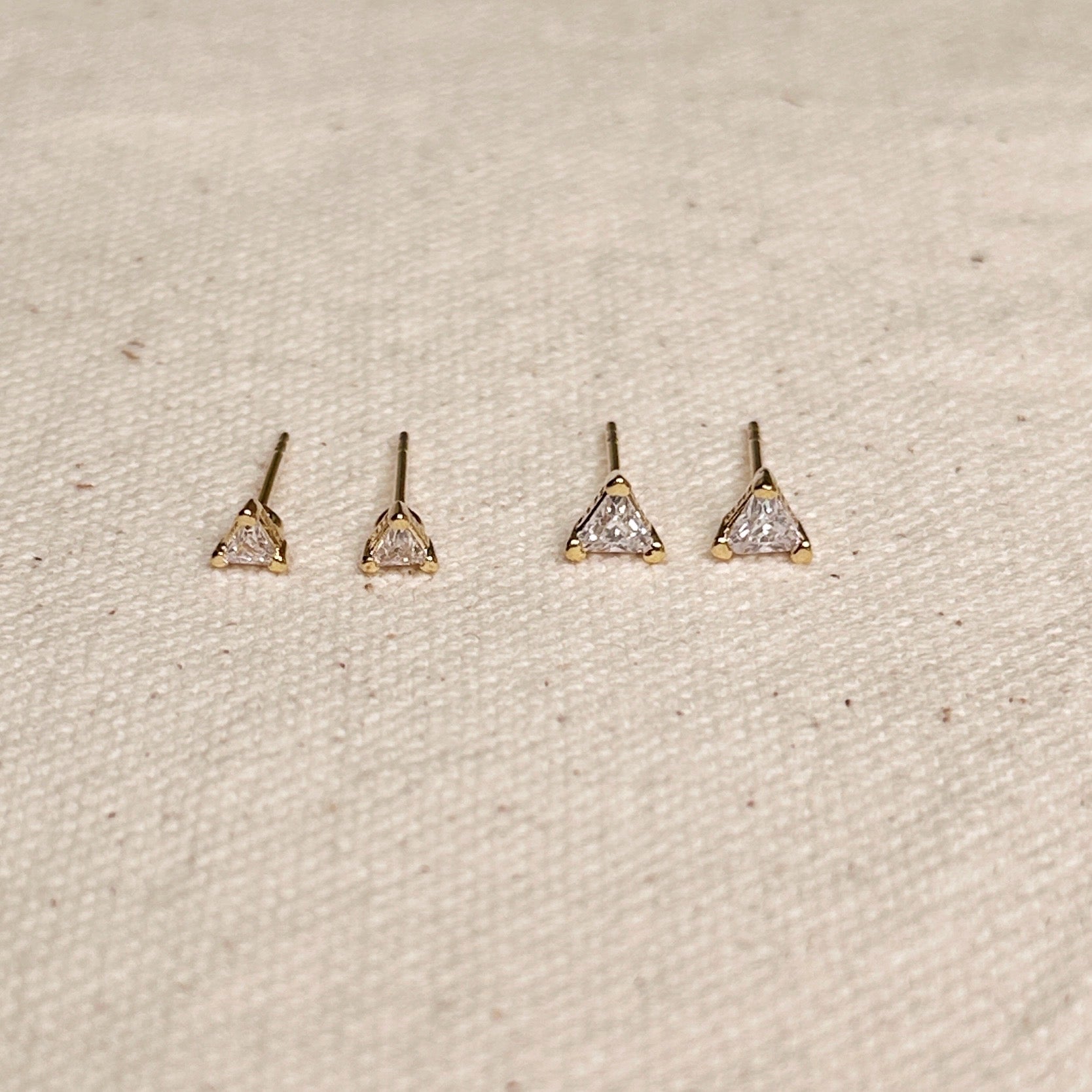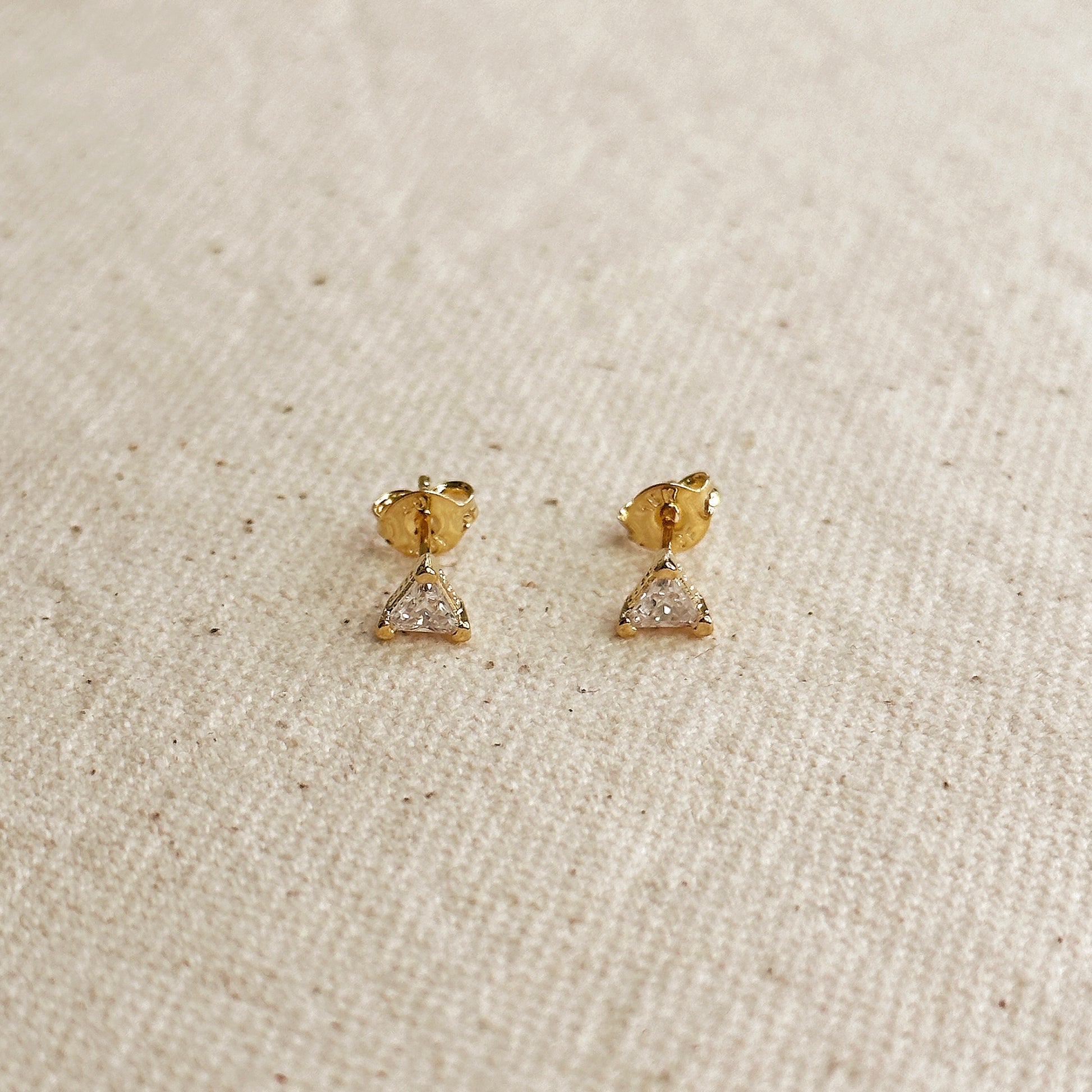 Look stylish and feel confident with these mini, edgy, CZ triangle studs. They make the perfect accessory for any occasion and will take your look from basic to chic! Show off your unique style and sparkle!