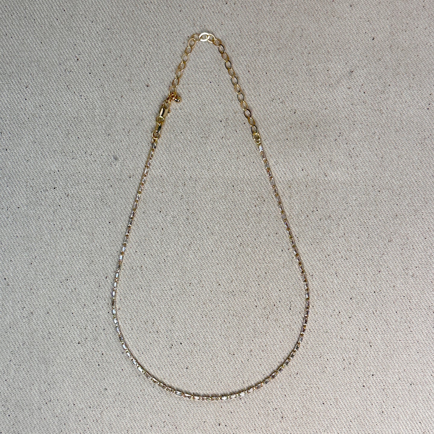 18k Gold Filled 1.5mm Baguette CZ Tennis Necklace