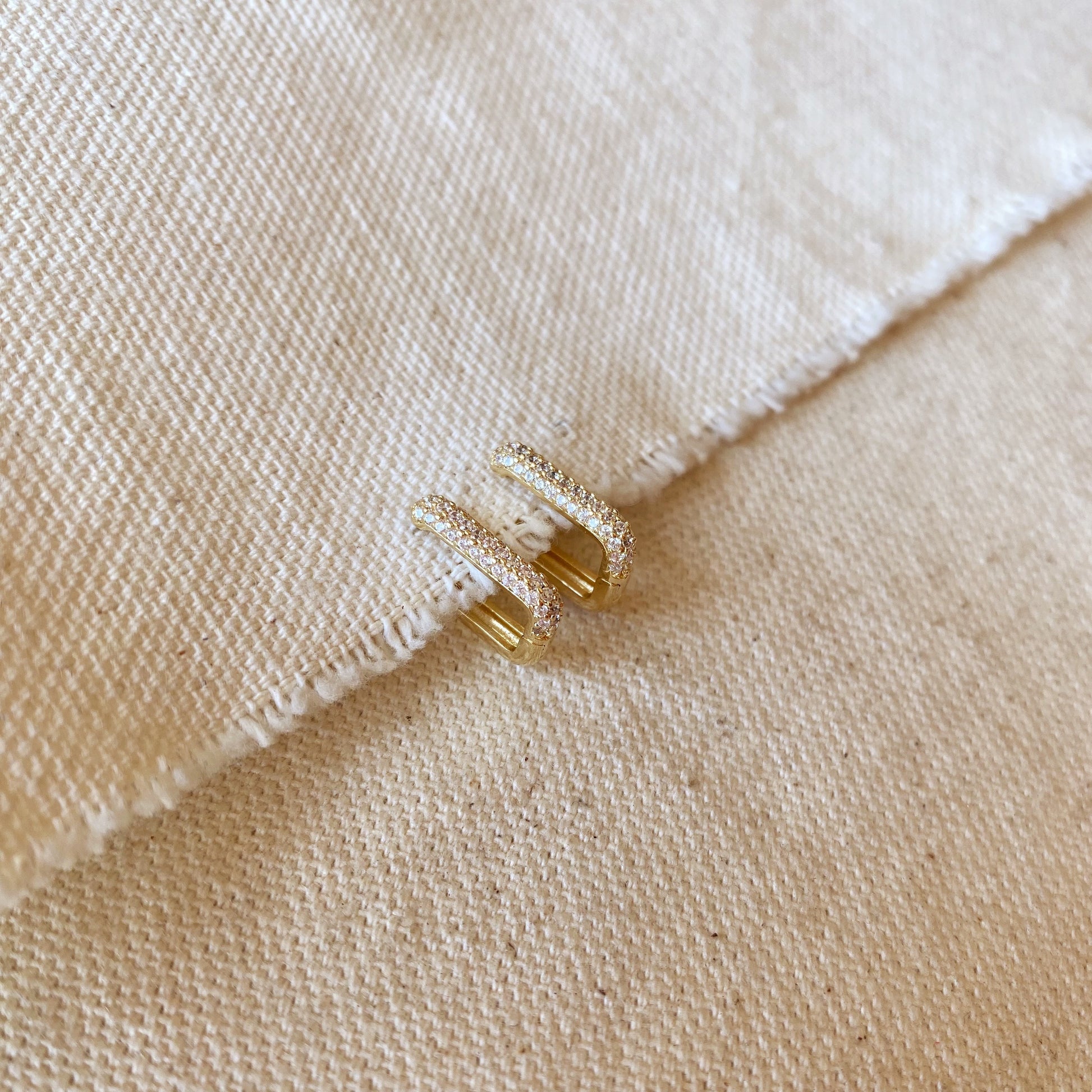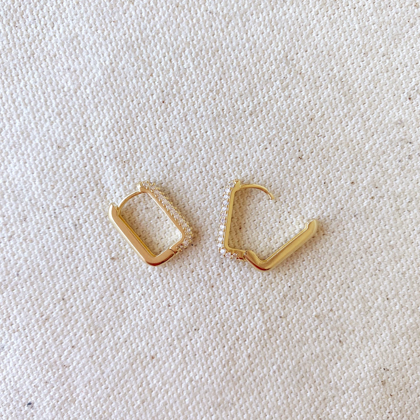 18k Gold Filled Rectangular Clicker Hoop Earrings with micro pave Cubic Zirconia Stones.