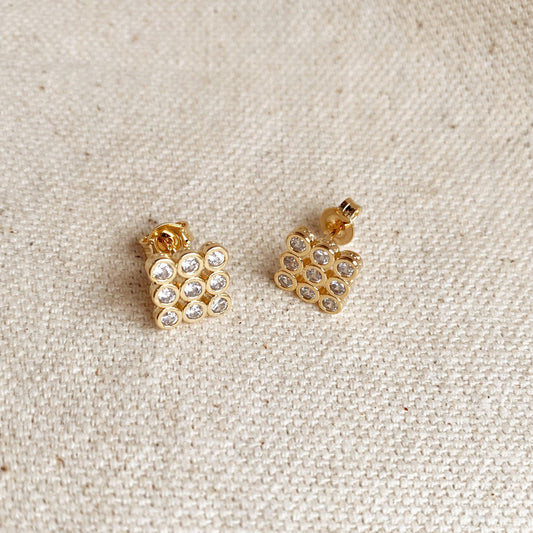 18k Gold Filled Micro CZ Princess Cut Stud Earrings