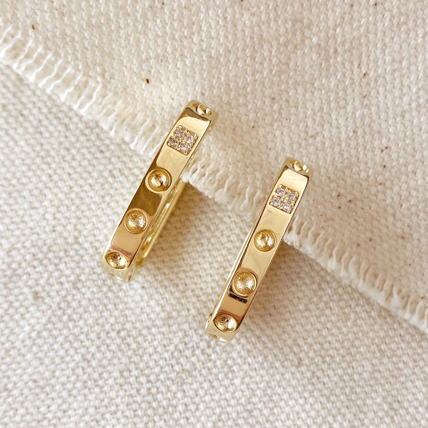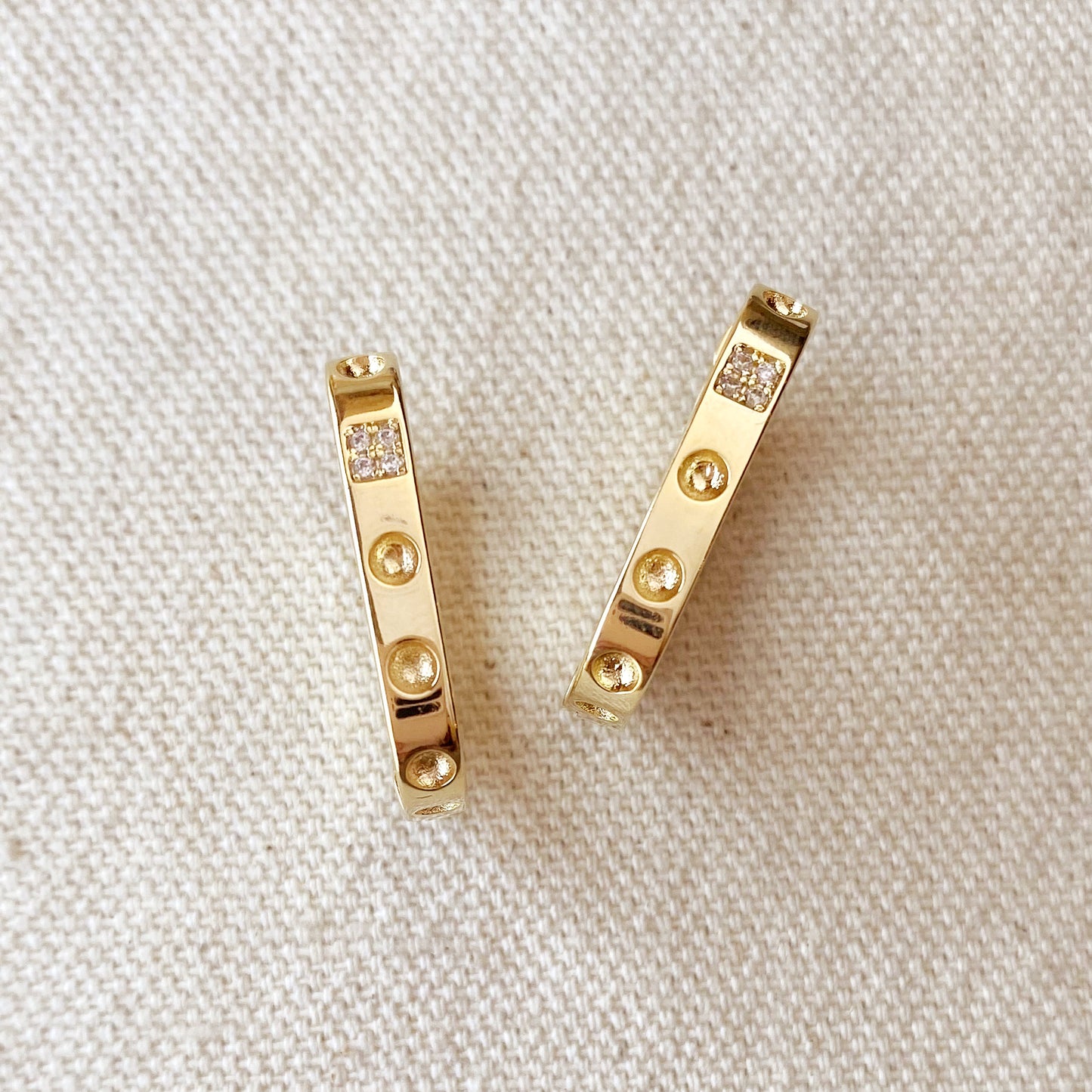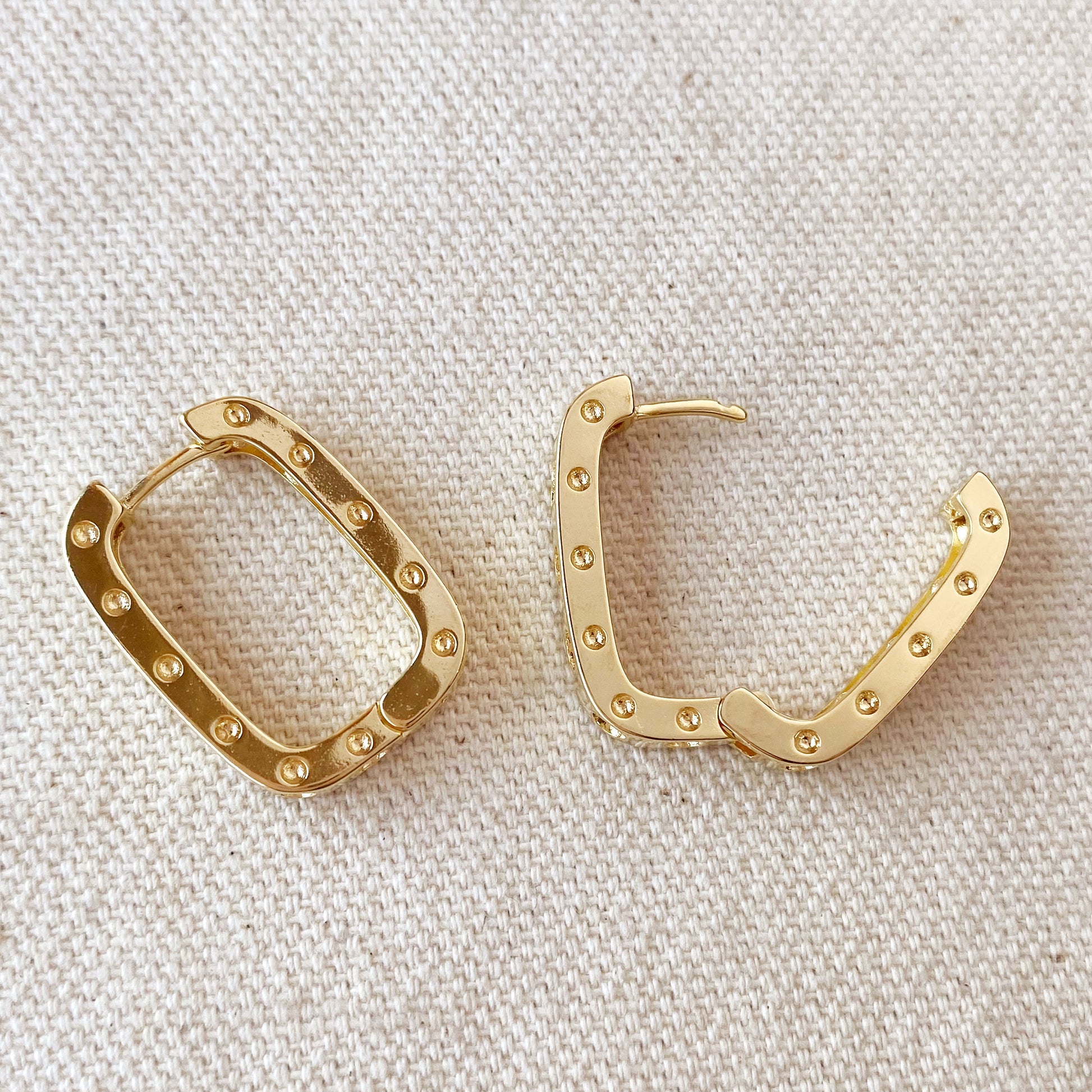 18k Gold Filled Large Rectangular Clicker Hoop Earrings With Cubic Zirconia Detail