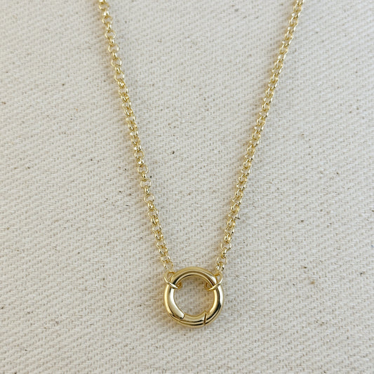 18k Gold Filled Rolo Chain Necklace Featuring Carabiner Clasp