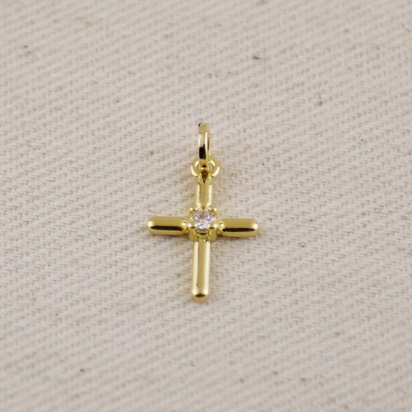 18k Gold Filled Polished Cross With CZ Detail Pendant
