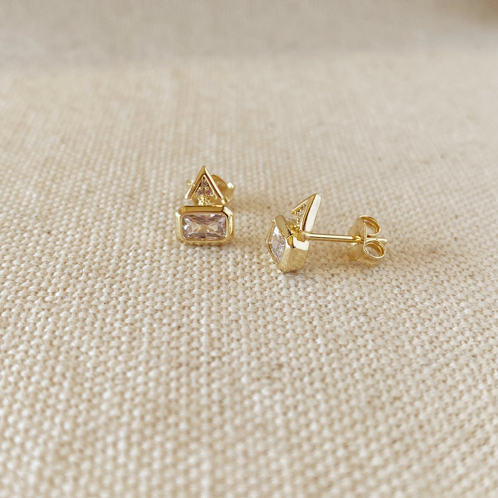 18k Gold Filled Geometric Stud Earrings with Cubic Zirconia Stones