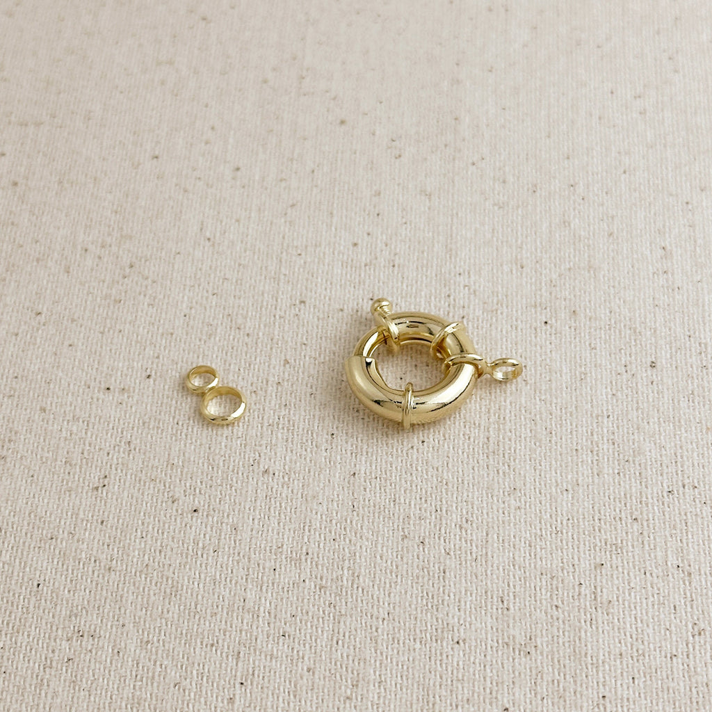 This 18k gold-filled 17mm Spring Ring clasp is a high-quality DIY jewelry component for Jewelry crafting. It features a polished finish for a sophisticated look.