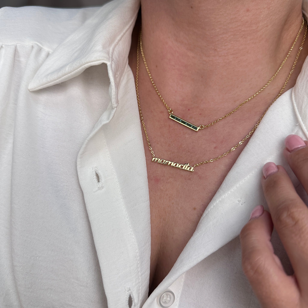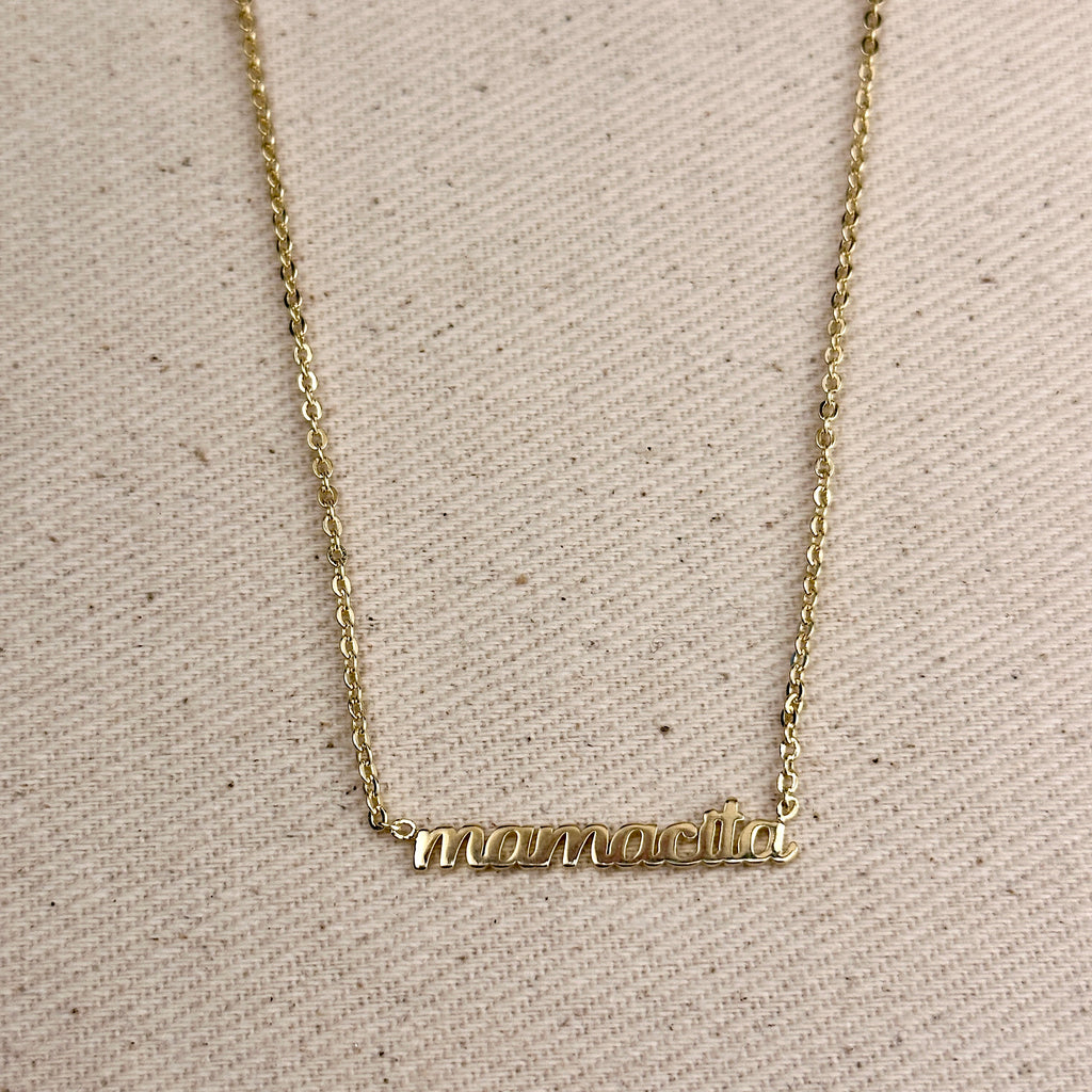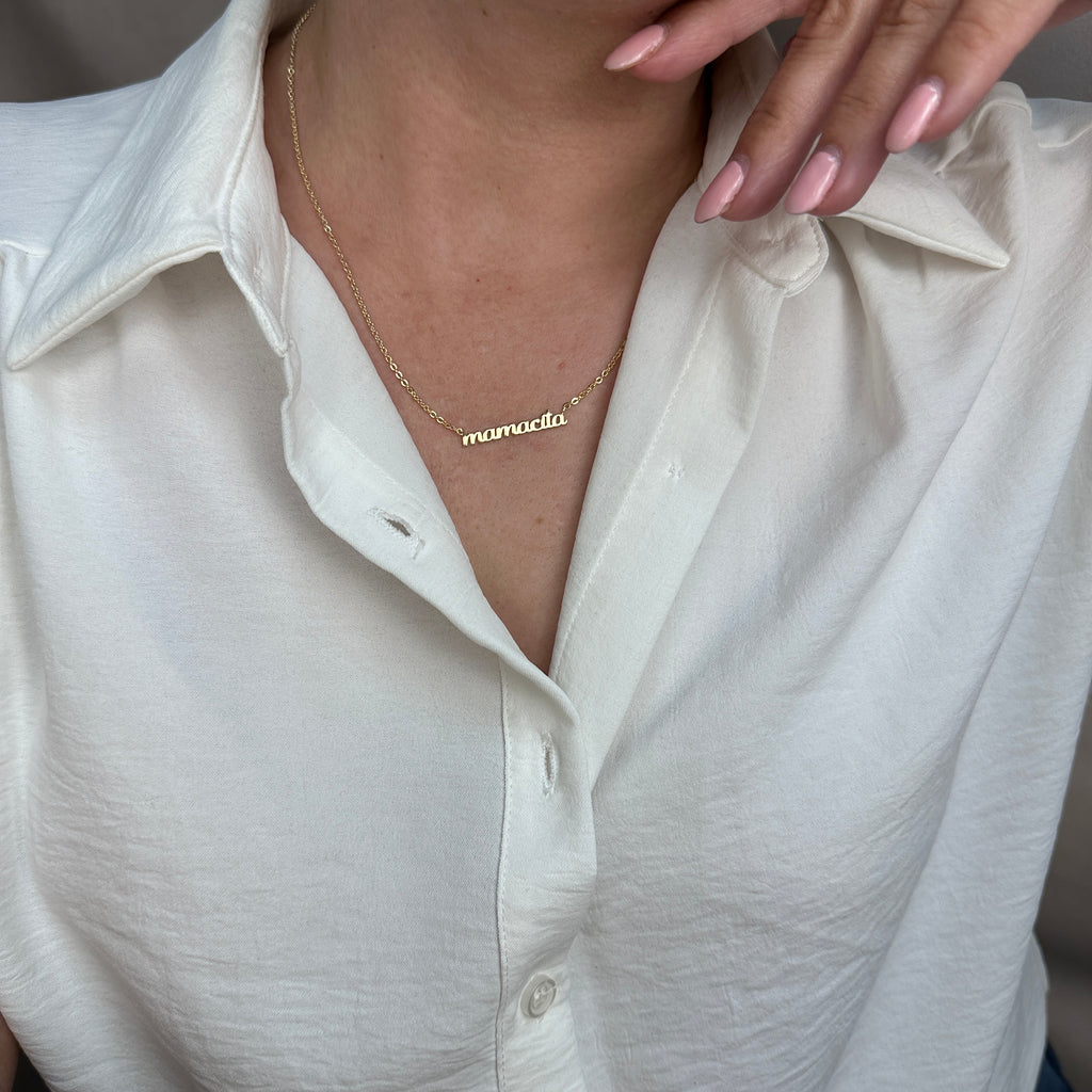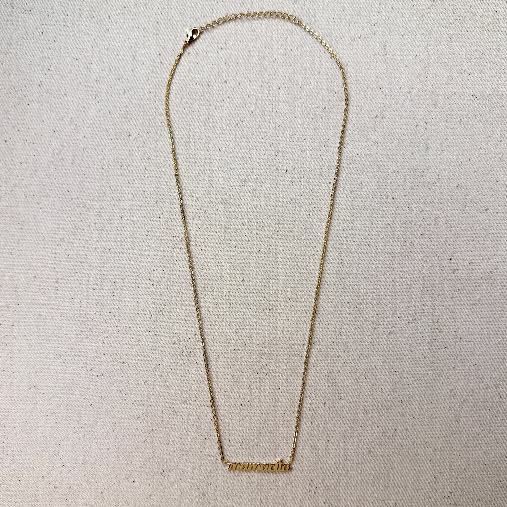 Embrace your inner goddess with our 18k Gold Filled Mamacita Necklace. This captivating piece celebrates your strength, beauty, and spirit with a touch of playful elegance. The "Mamacita" script pendant gleams with a radiant shine that lasts. Perfect for layering or wearing solo, this necklace is a chic statement of confidence and charm. Whether you're treating yourself or surprising a special mamacita in your life, this necklace is a beautiful reminder of the power and grace that lies within.