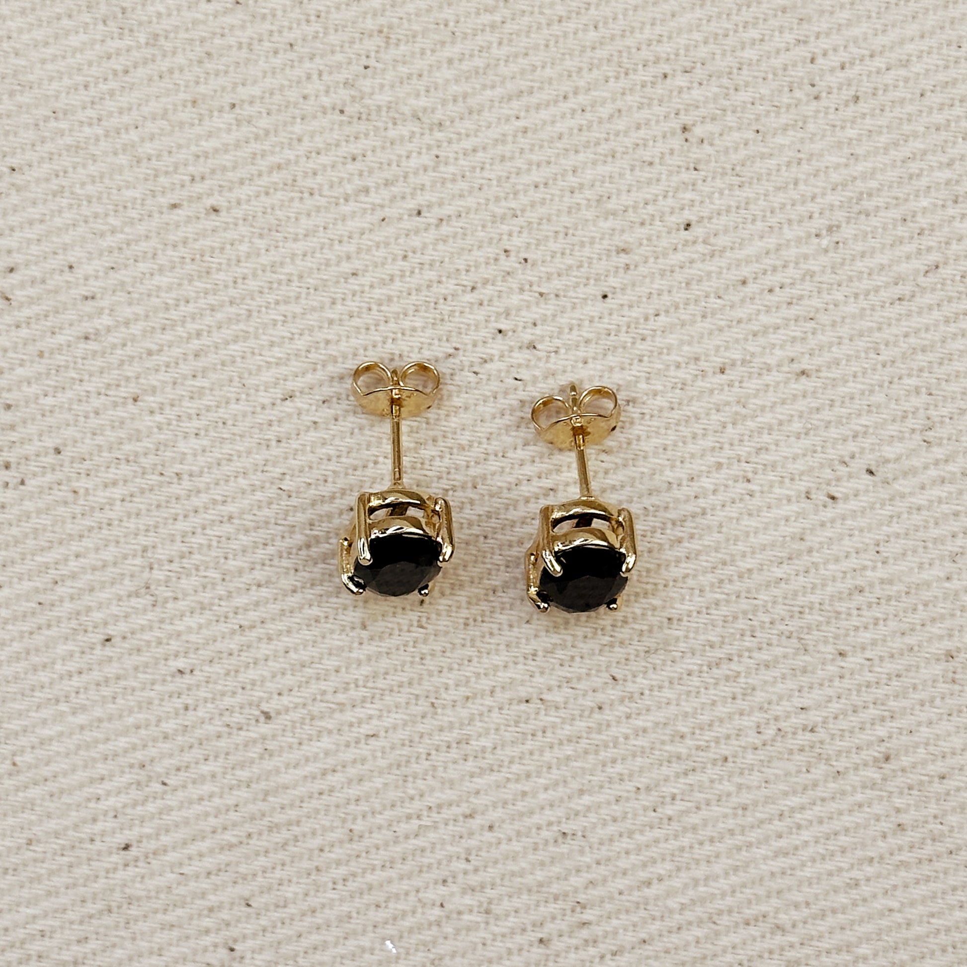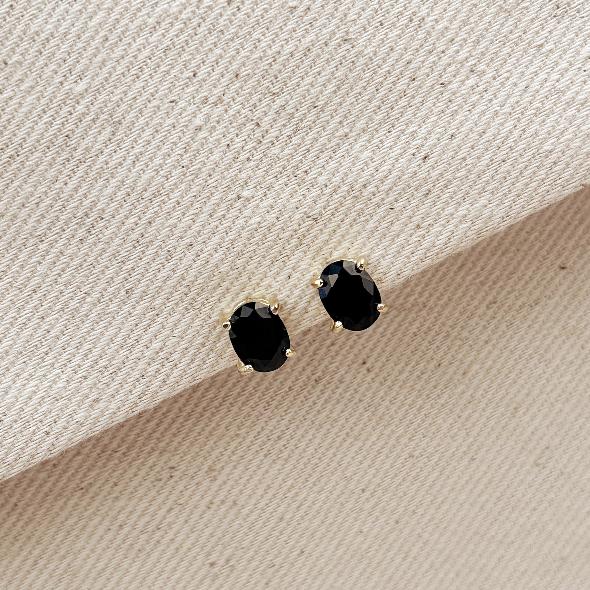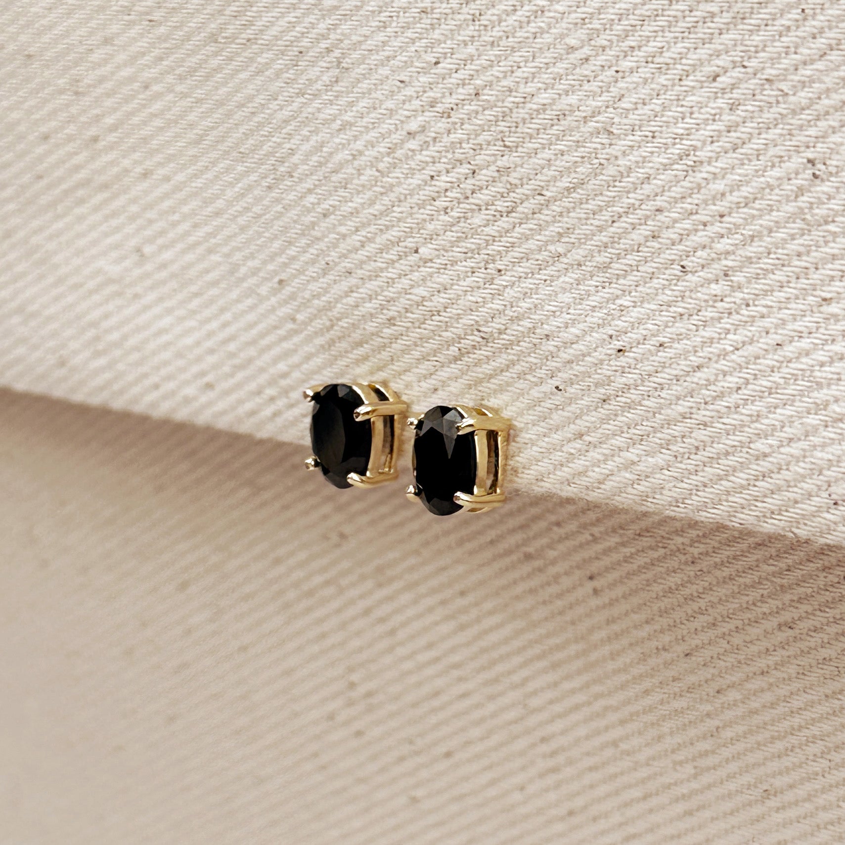 18k Gold Filled Oval Black Cubic Zirconia Stud Earrings