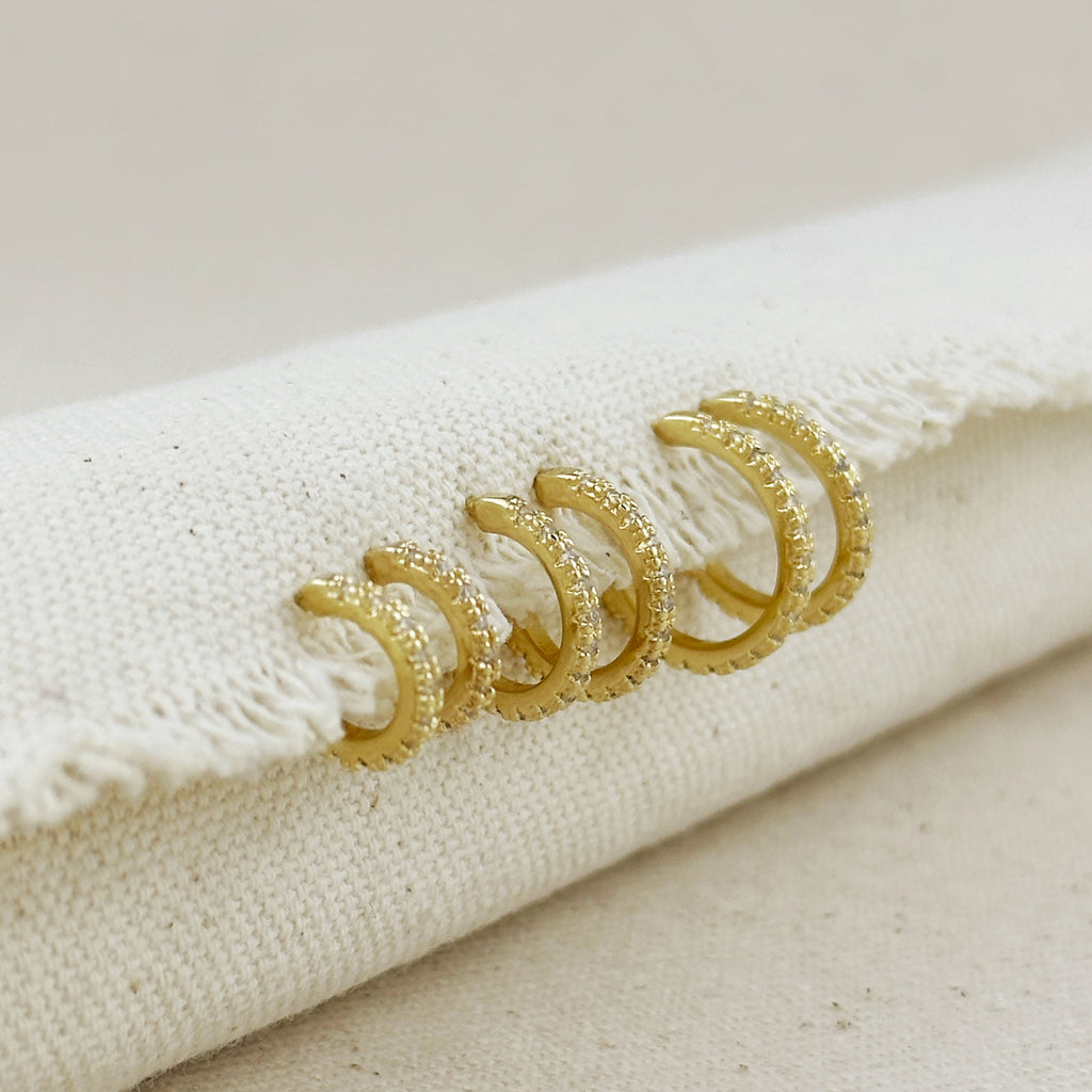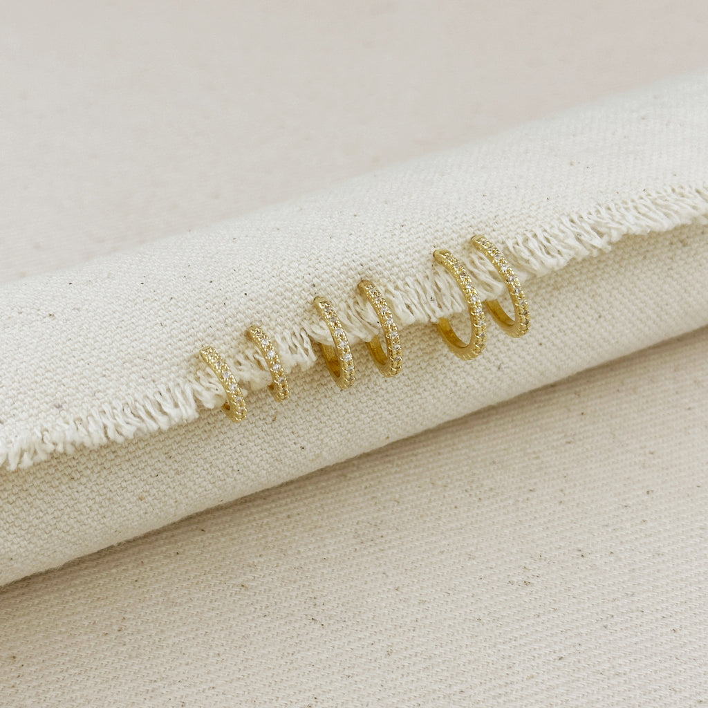 These premium 18k Gold Filled Thin Line Cubic Zirconia C Hoop Earrings are made with high-quality gold filled and feature thin semi-hoops adorned with sparkling cubic zirconia stones. The perfect take on modern trendsetting jewelry, these earrings are exclusive and stylish. Available in 3 sizes to best suit your style.