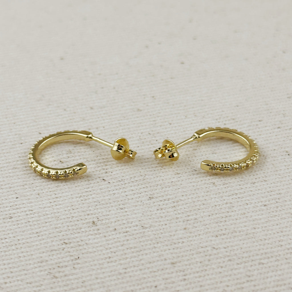 18k Gold Filled Thin Line Cubic Zirconia C Hoop Earrings
