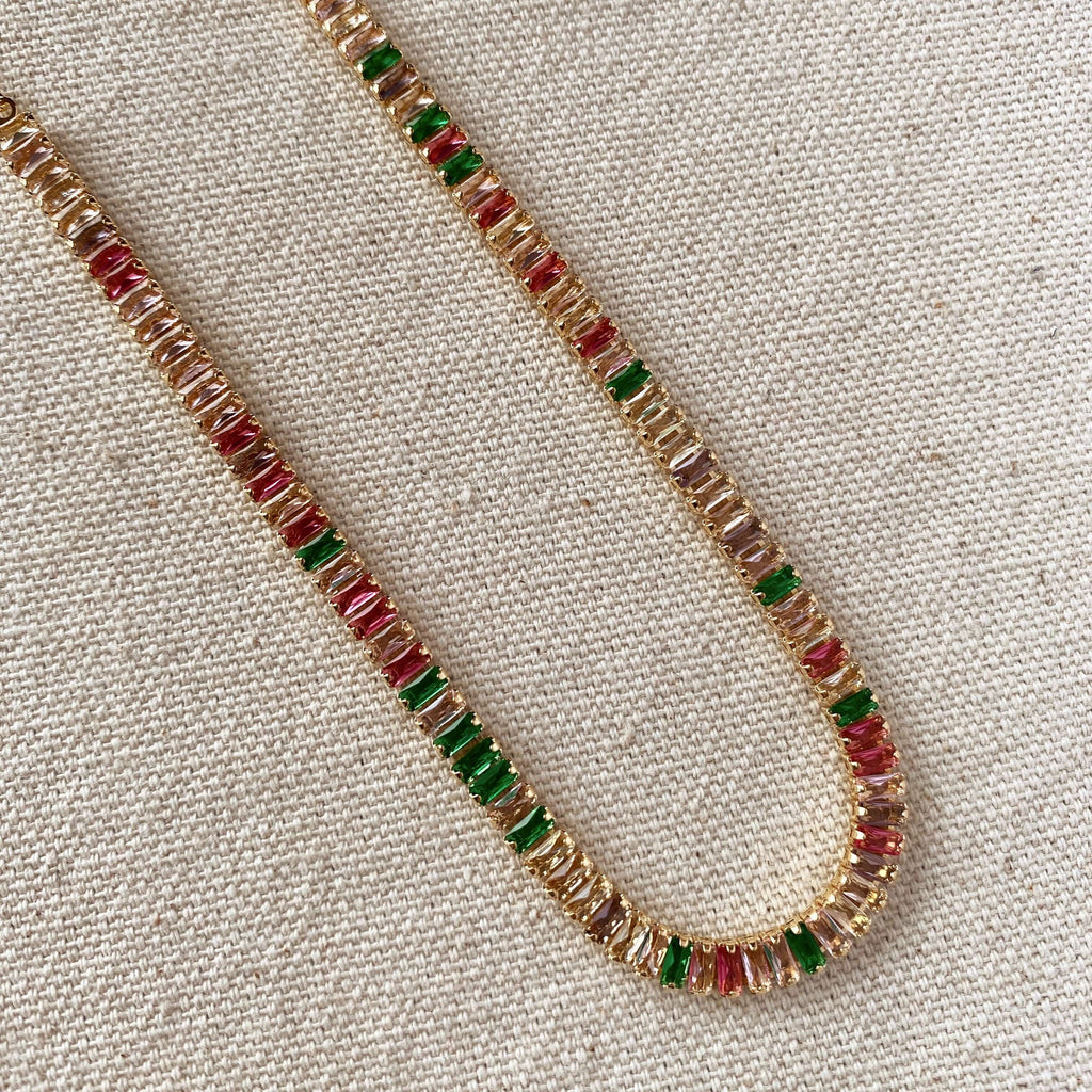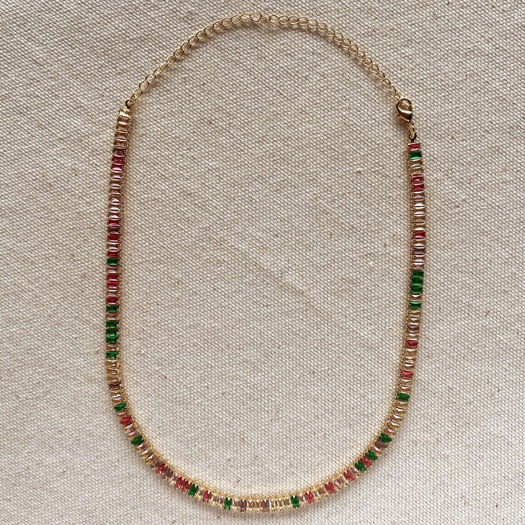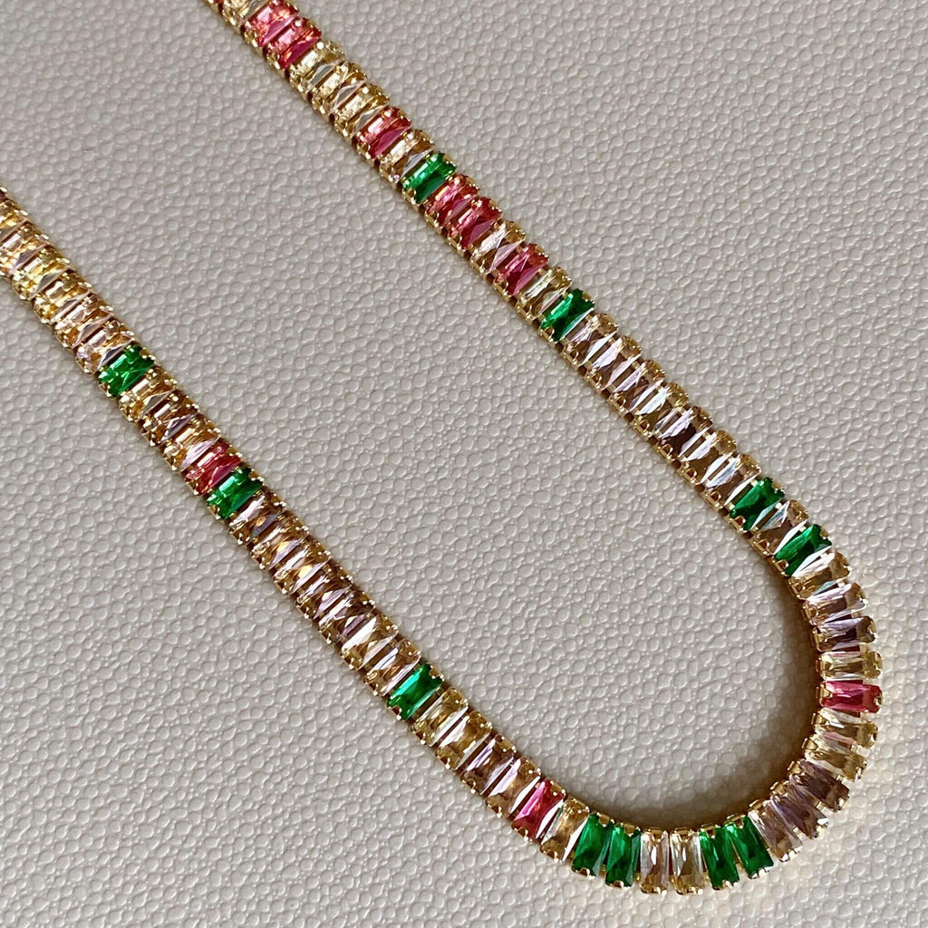 A unique choker of 18k gold filled with a pastel colorful Cubic Zirconia stones baguette.