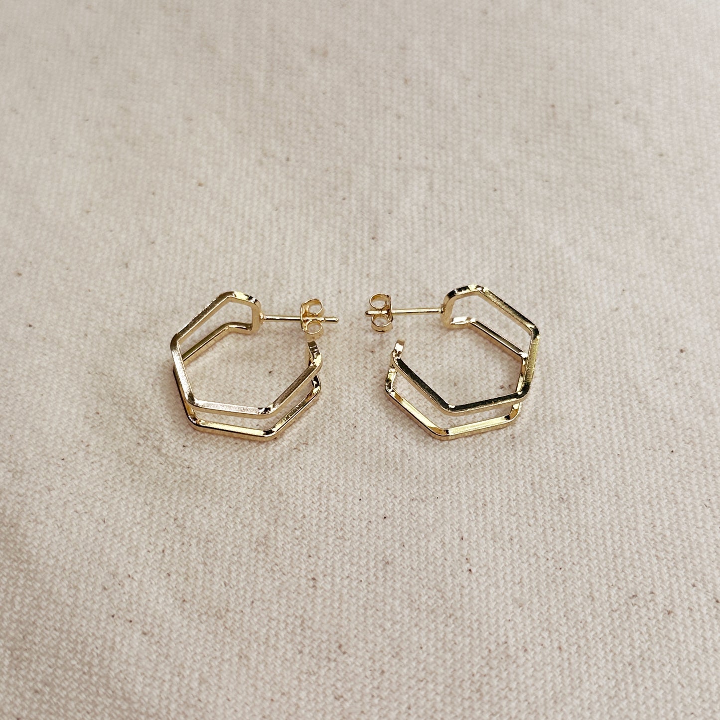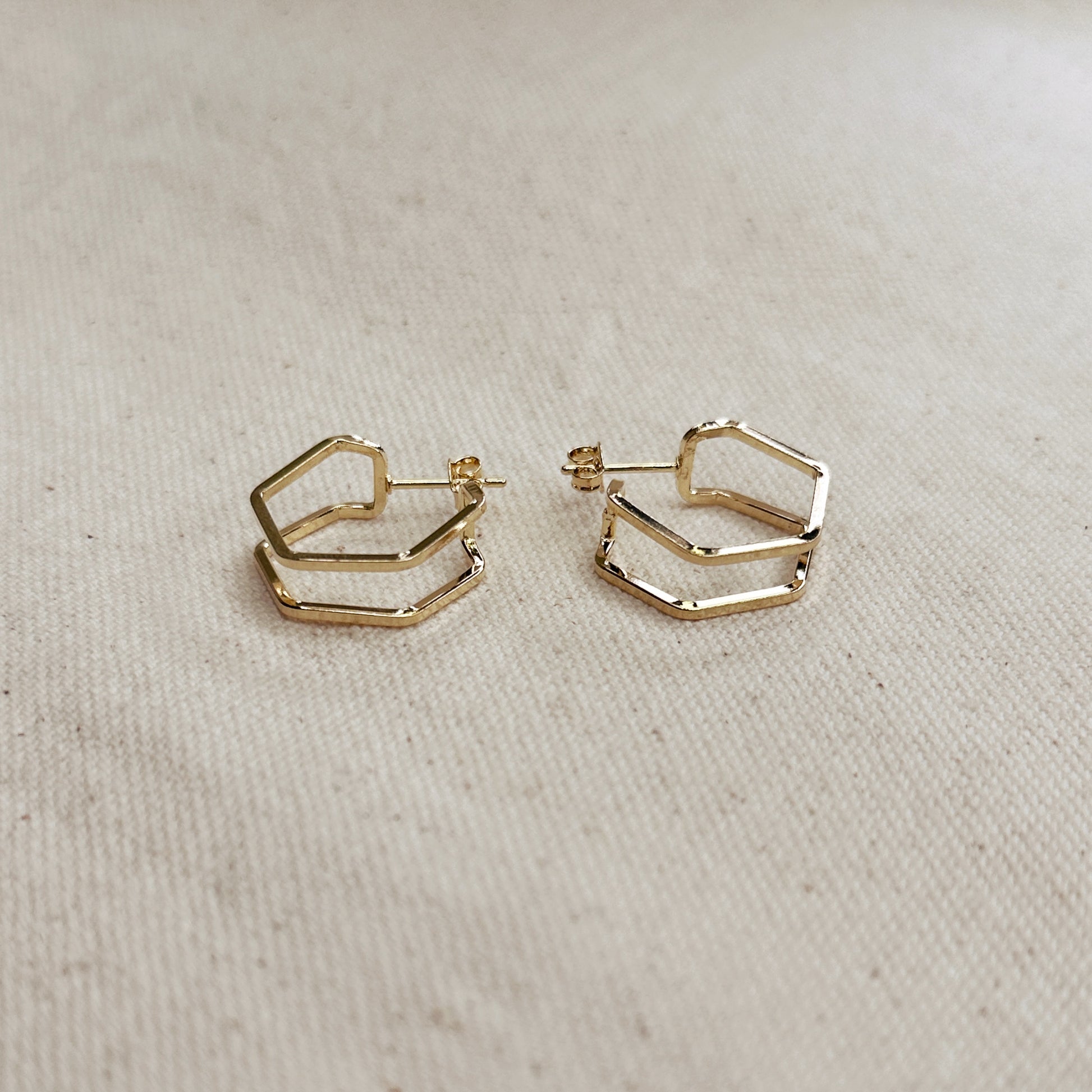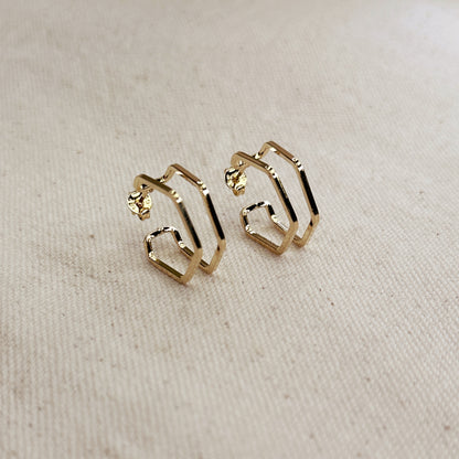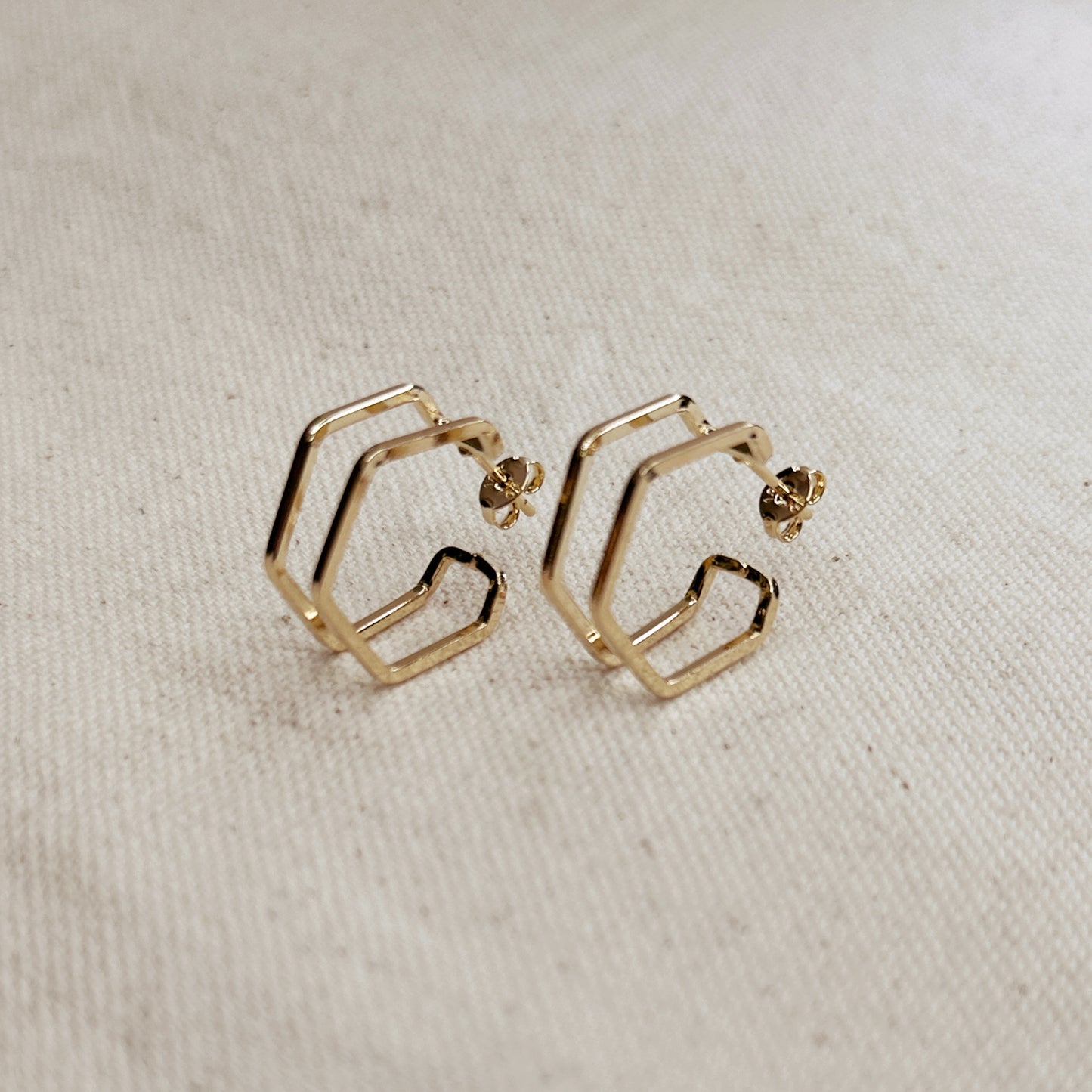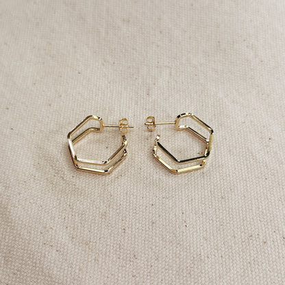18k Gold Filled Double Wire Geometric C Hoop Earrings