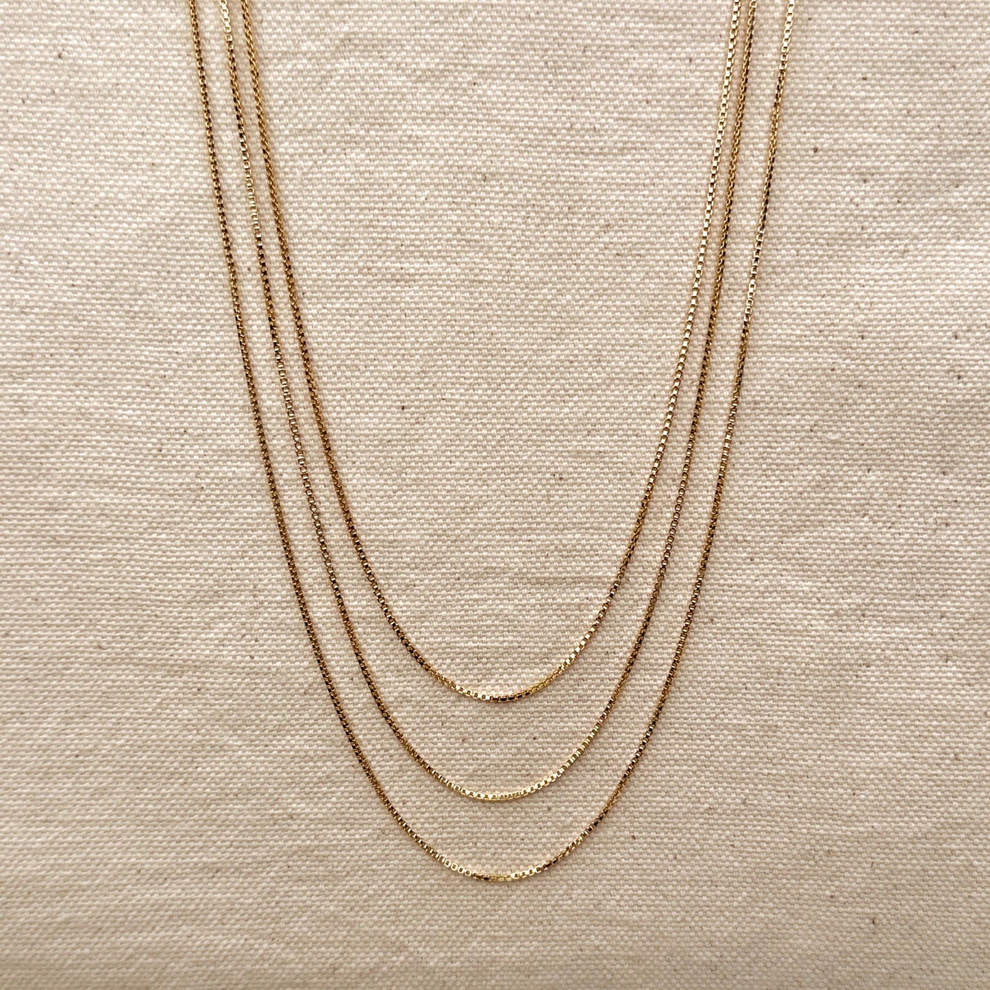 This classic and elegant 1mm box chain is perfect for adding a touch of glamour to your favorite outfit. Its subtle design will make any look shine. Layer it with other necklaces or add your favorite charm for pure perfection!
