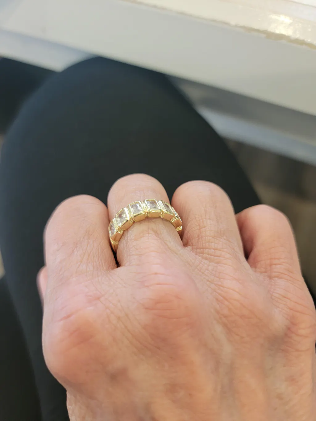 Bring some sparkle to your style with our 18k Gold Filled Thin Line CZ Ring. This stackable ring is perfect for adding a touch of elegance to any outfit. The minimalist design and sparkling Cubic Zirconia will catch everyone's eye and leave you feeling confident and stylish.