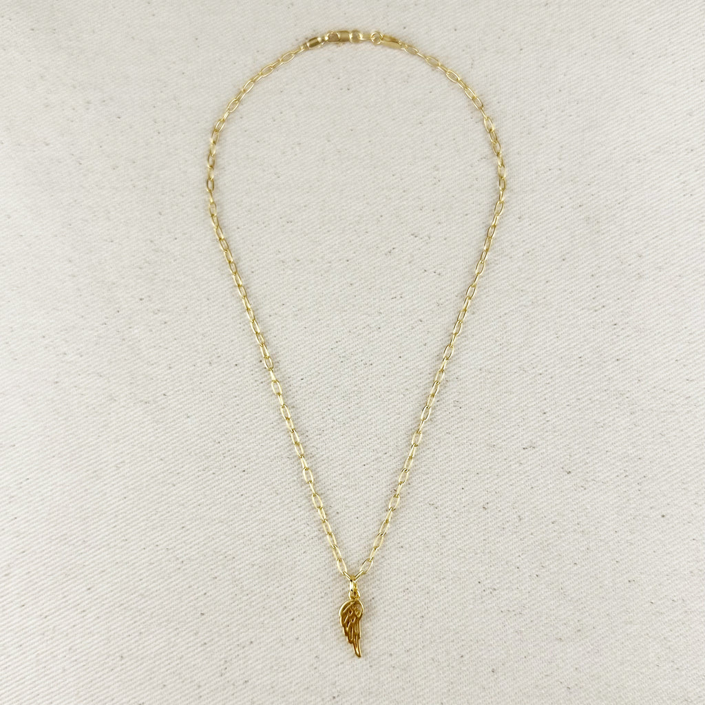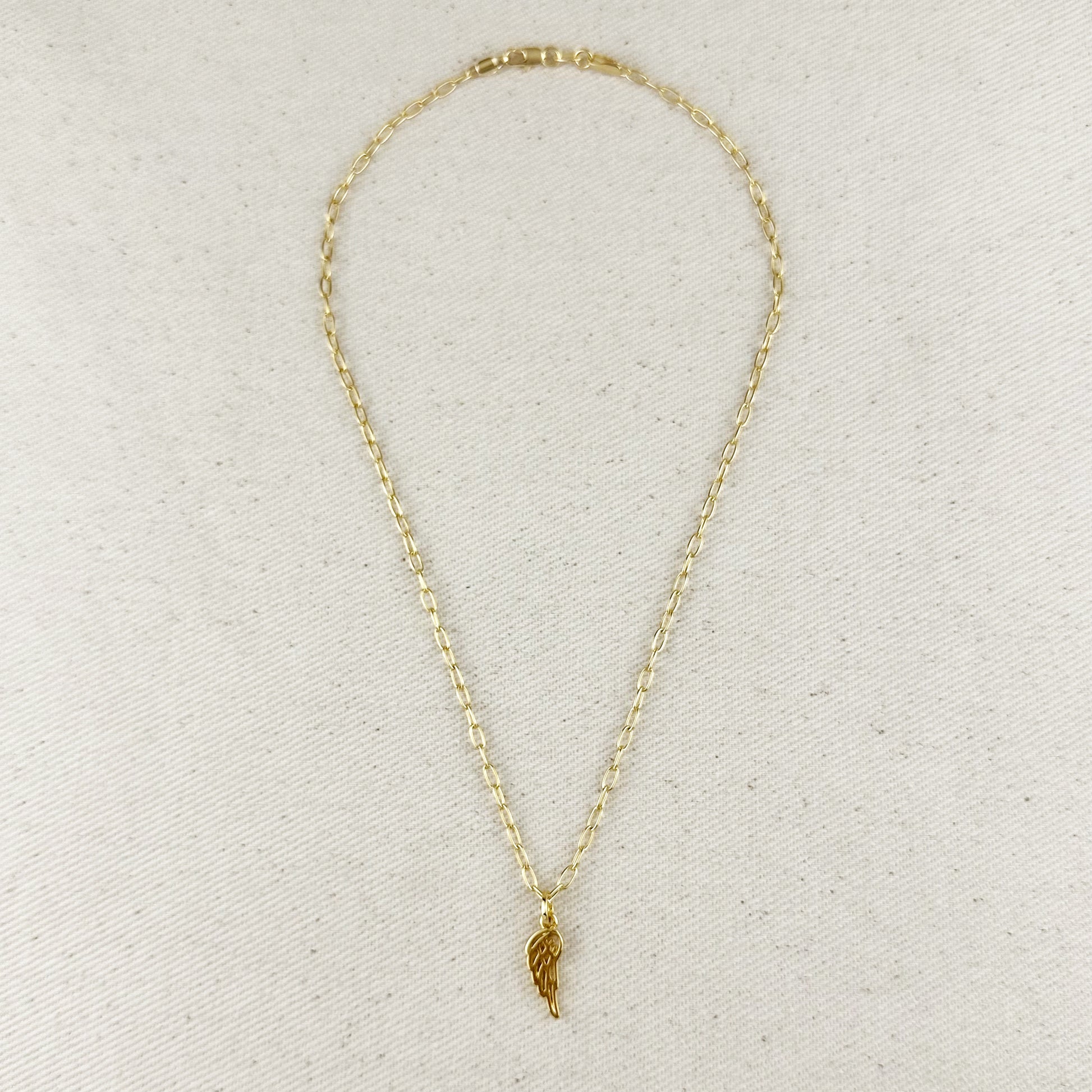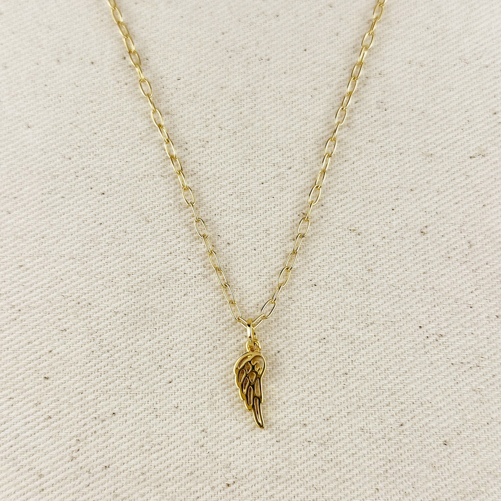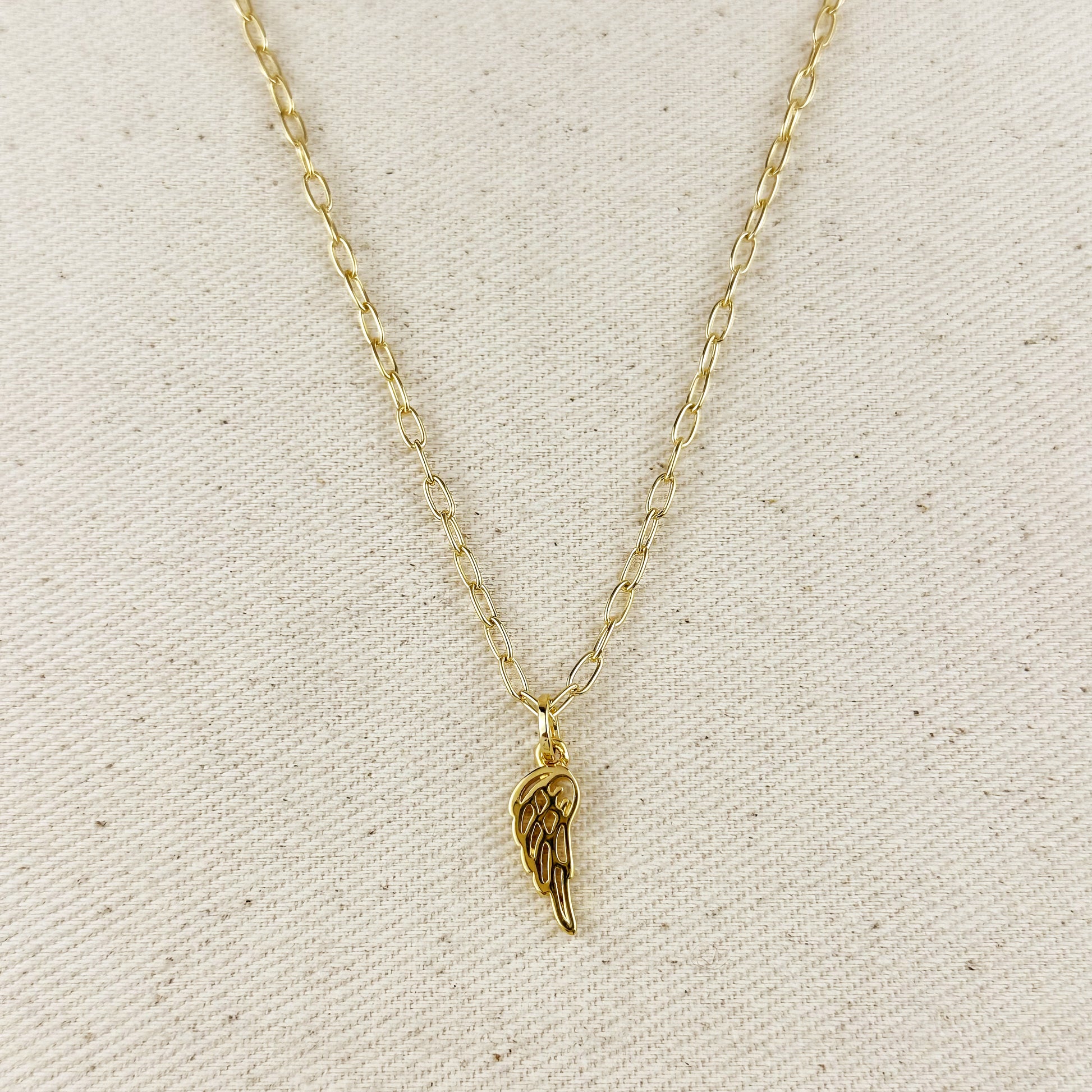 This elegant 18k gold filled angel wing necklace features delicate wing-shaped pendant that symbolize protection, guidance, and spiritual connection. The intricate feather detailing catches light beautifully, while the comfortable chain length makes it perfect for everyday wear or special occasions, this meaningful piece makes a thoughtful gift for someone special or a cherished addition to your own jewelry collection.