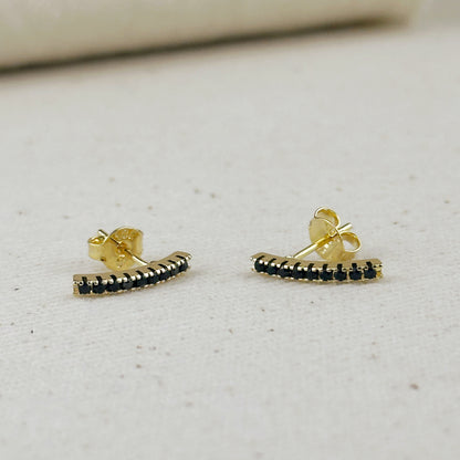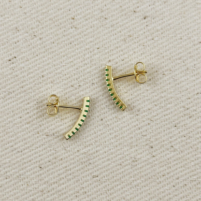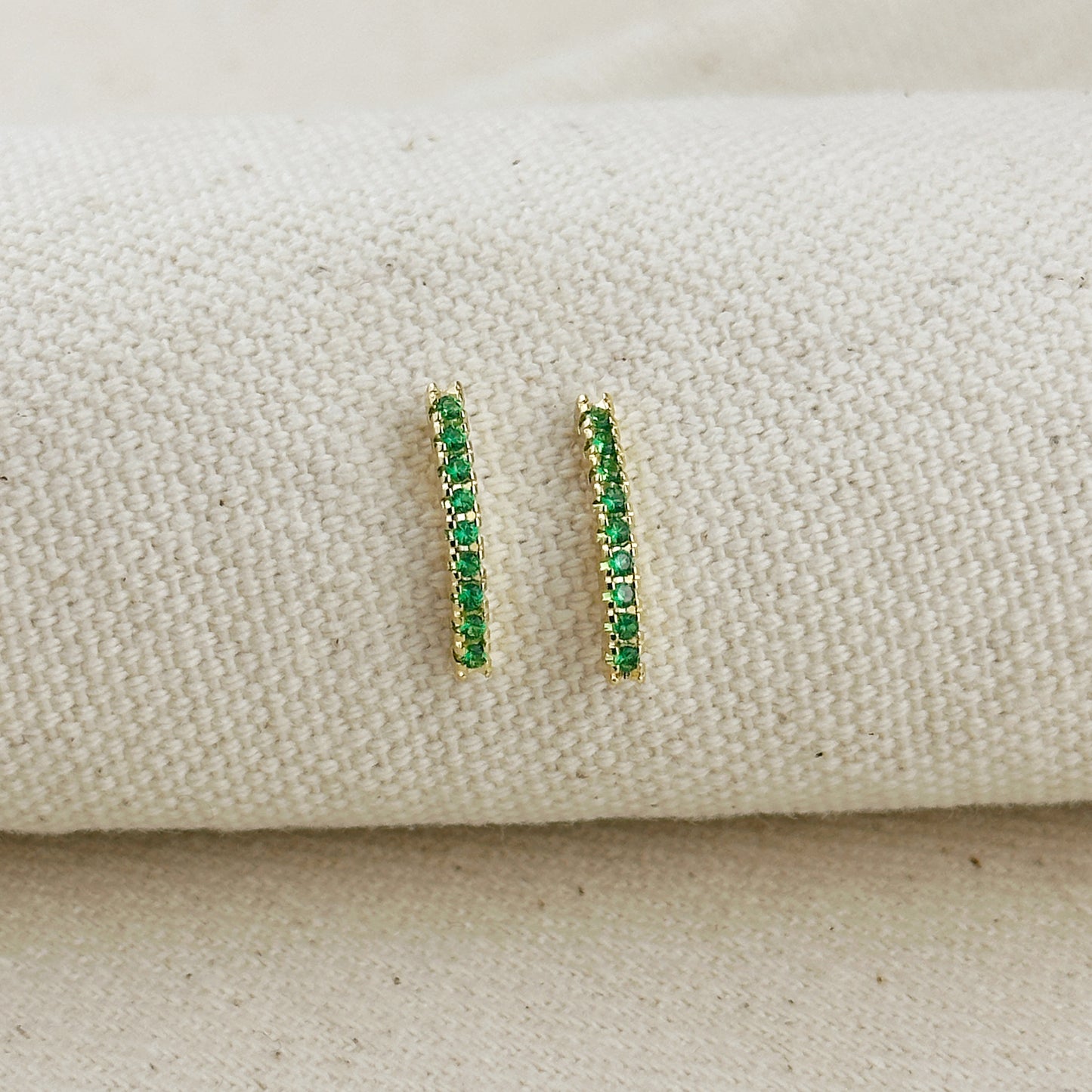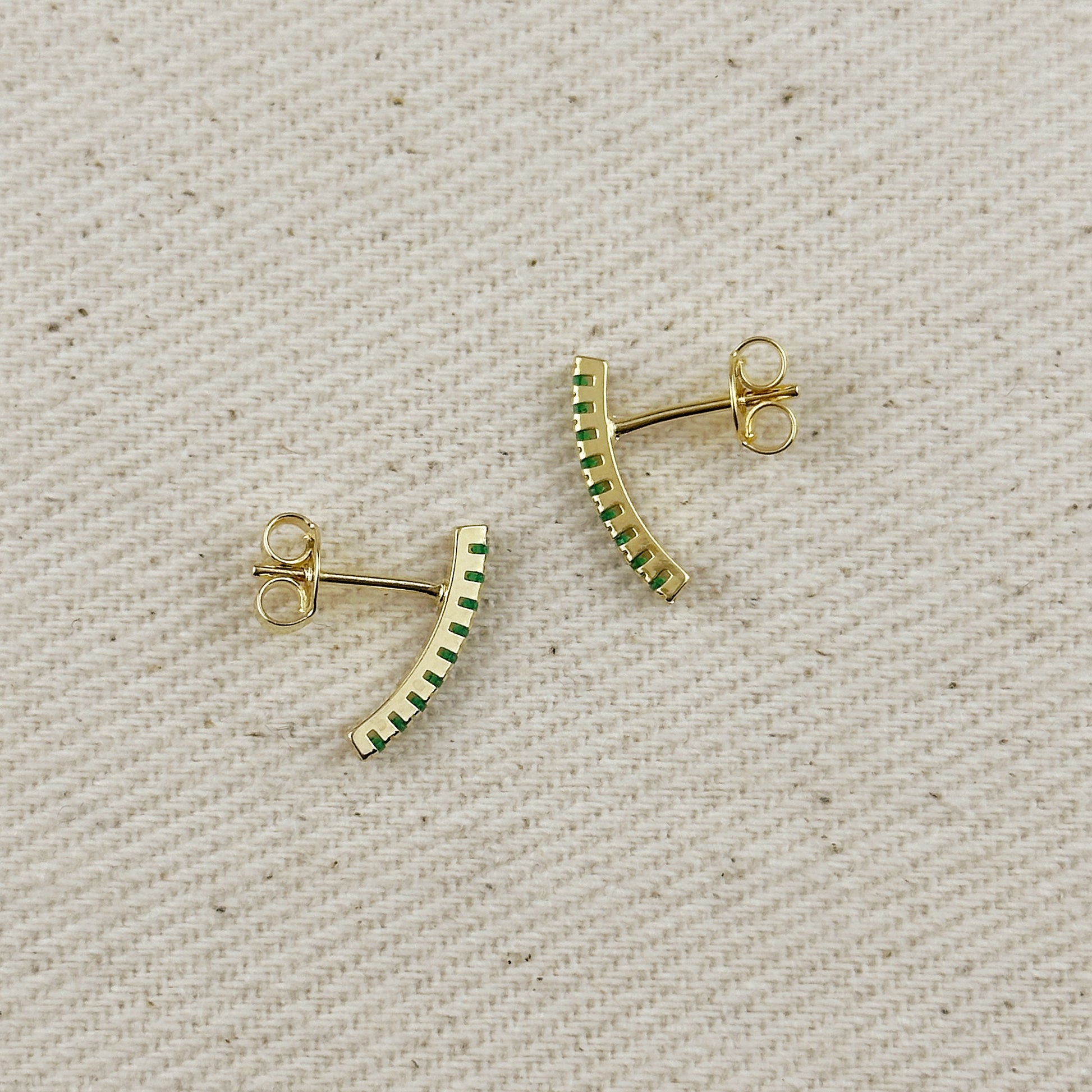 Elegant simplicity meets sparkle in these delicate stud earrings. A thin line of 18K gold-filled metal cradles a single, brilliant cubic zirconia stone, creating a sleek and modern design. Available in clear, black, or emerald-colored stones, these versatile studs add a touch of refined glamour to any outfit without overpowering your look.