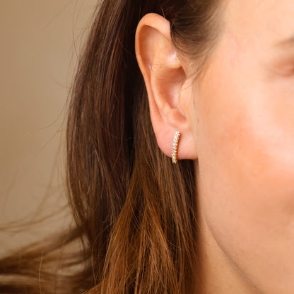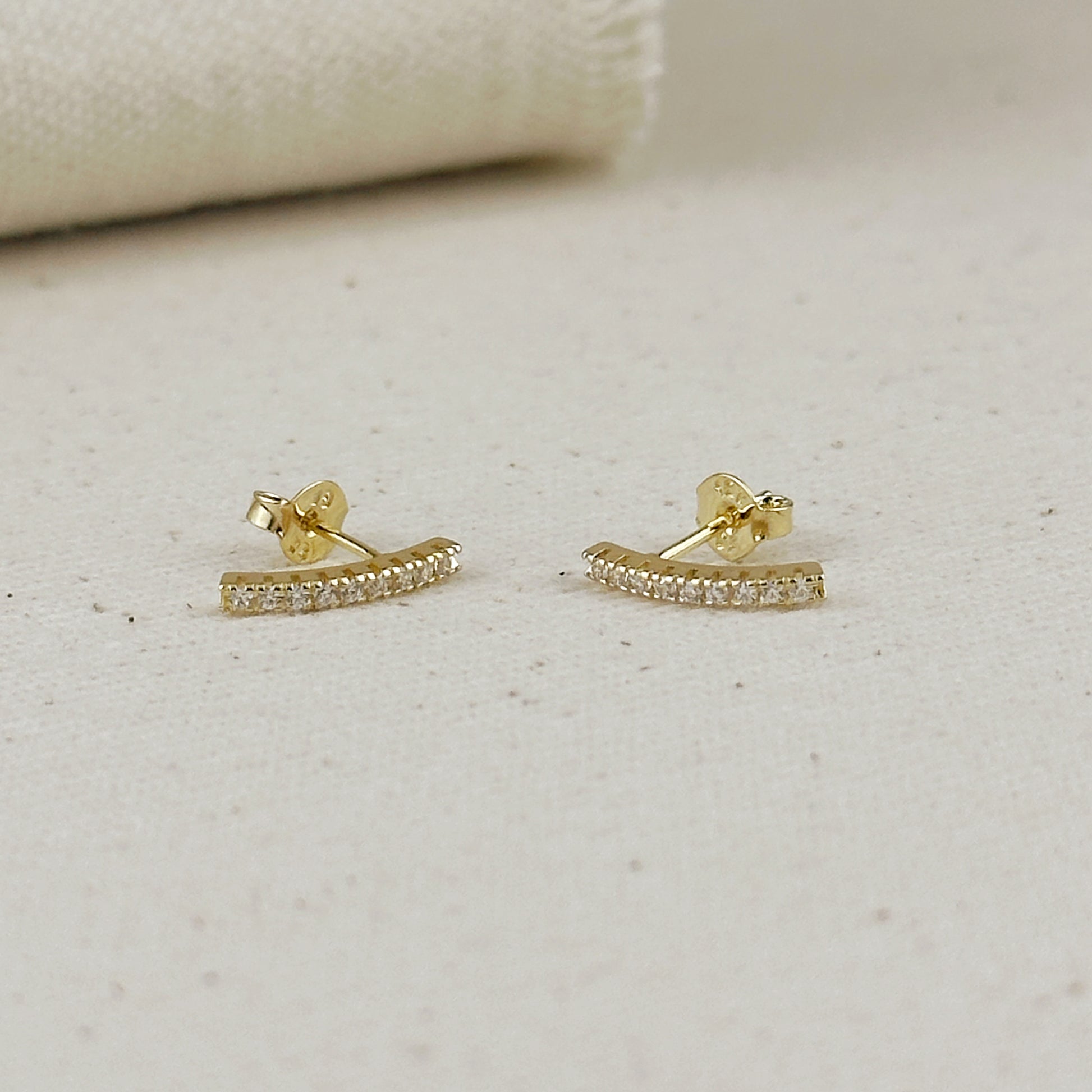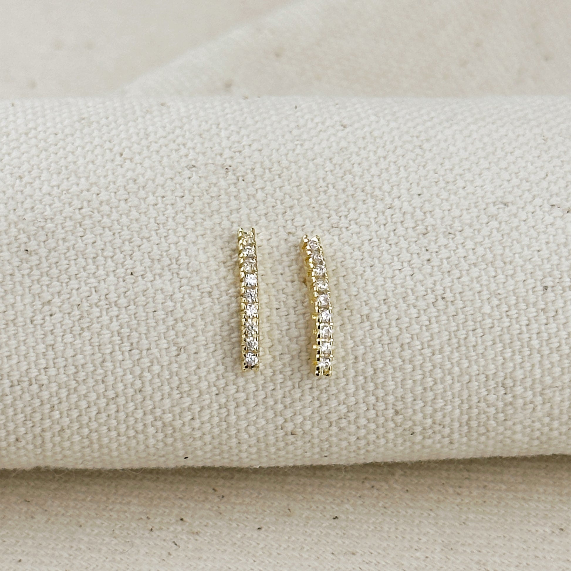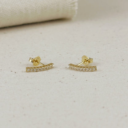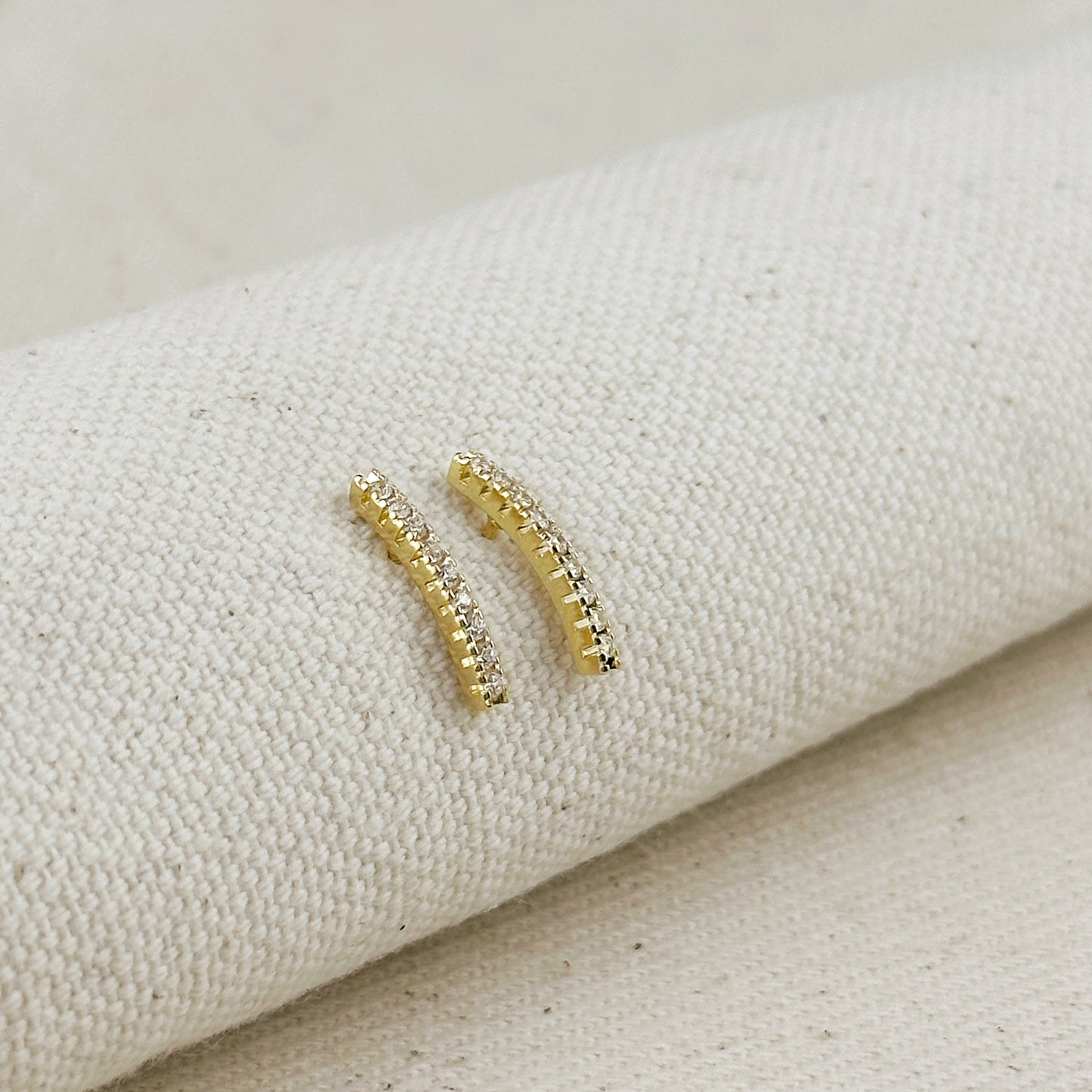 Elegant simplicity meets sparkle in these delicate stud earrings. A thin line of 18K gold-filled metal cradles a single, brilliant cubic zirconia stone, creating a sleek and modern design. Available in clear, black, or emerald-colored stones, these versatile studs add a touch of refined glamour to any outfit without overpowering your look.
