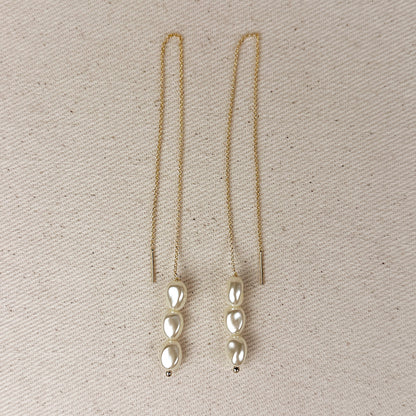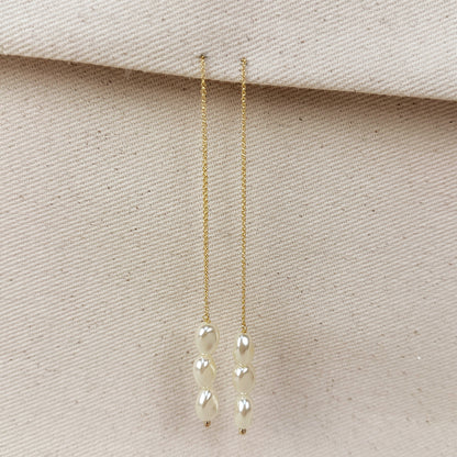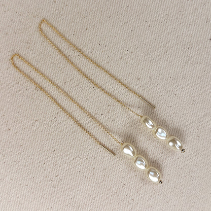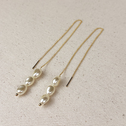 18k Gold Filled Row of Baroque Pearls Threader Earrings